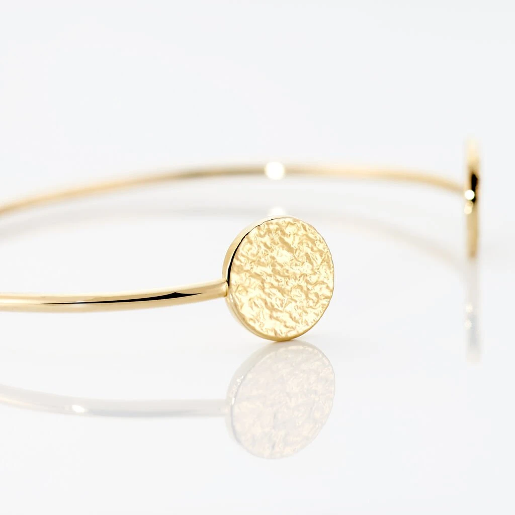Bracelet Jonc Plaqué Or Jaune Ouvert Forme Pastilles Effet Martele Diametre 45*55mm