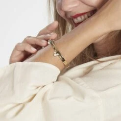 Bracelet Jonc Disney Acier Doré Message Et Pampille Tête De Mickey Cristaux Blancs 74-dst.70011l/06gp