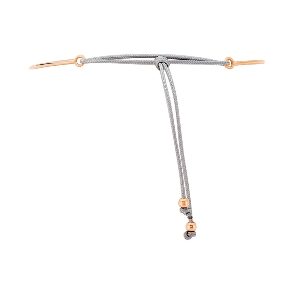 Jonc Argent 925/1000 Rose Avec Pastille Lisse Et Diamante + Cordon Gris