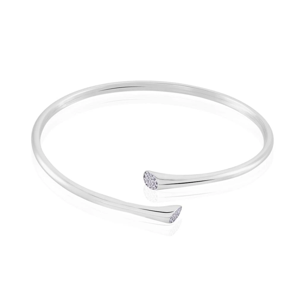 Bracelet Jonc Argent Blanc 925/1000 Embout Oxydes De Zirconium Micro Serti Diametre 60mm Largeur 3mm