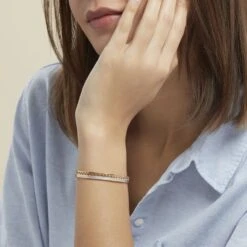Bracelet Jonc Zoila Plaqué Or Pierre De Synthese Et Oxyde