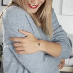 Bracelet Argent Blanc 925/1000 Motif Ceramique Noire Lisse Coeur Creux 19cm