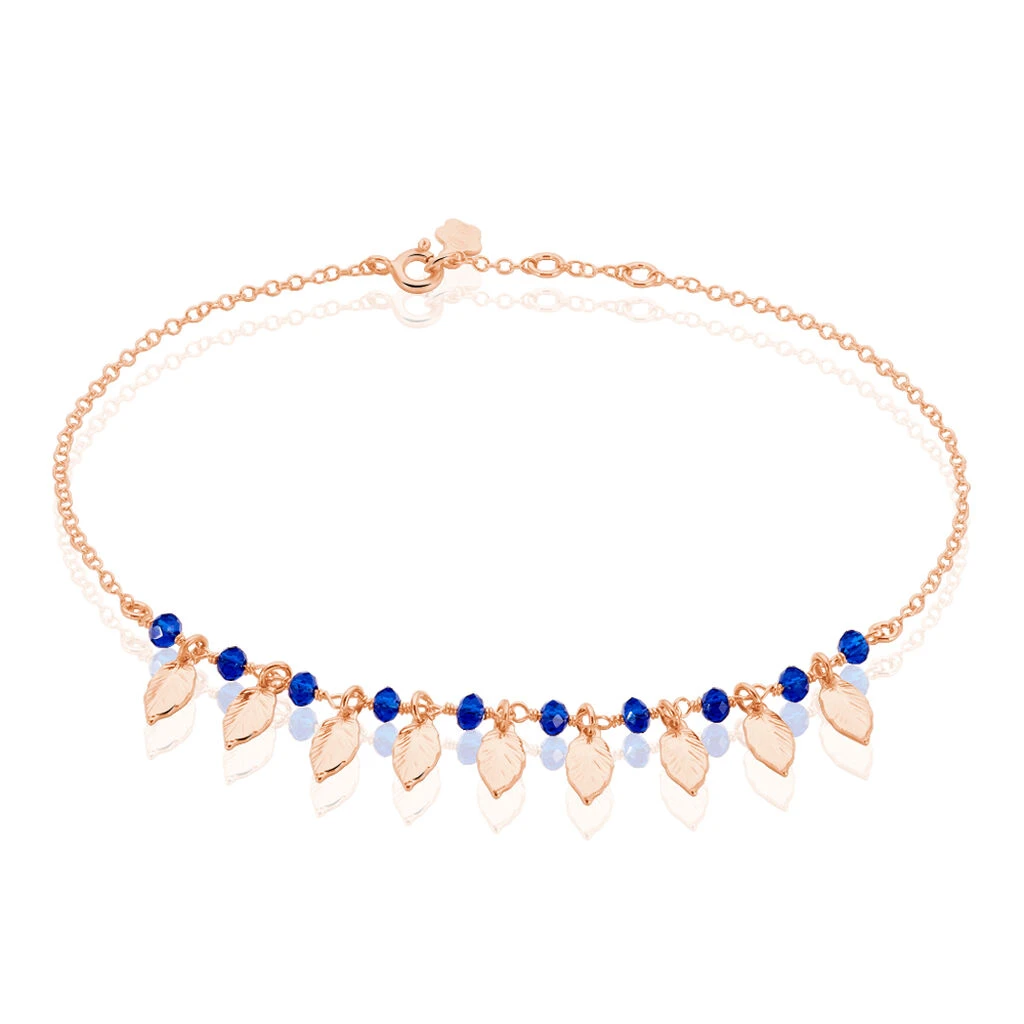 Chaine De Cheville Argent Rose 925/1000 Feuille Pierres Bleues 25cm
