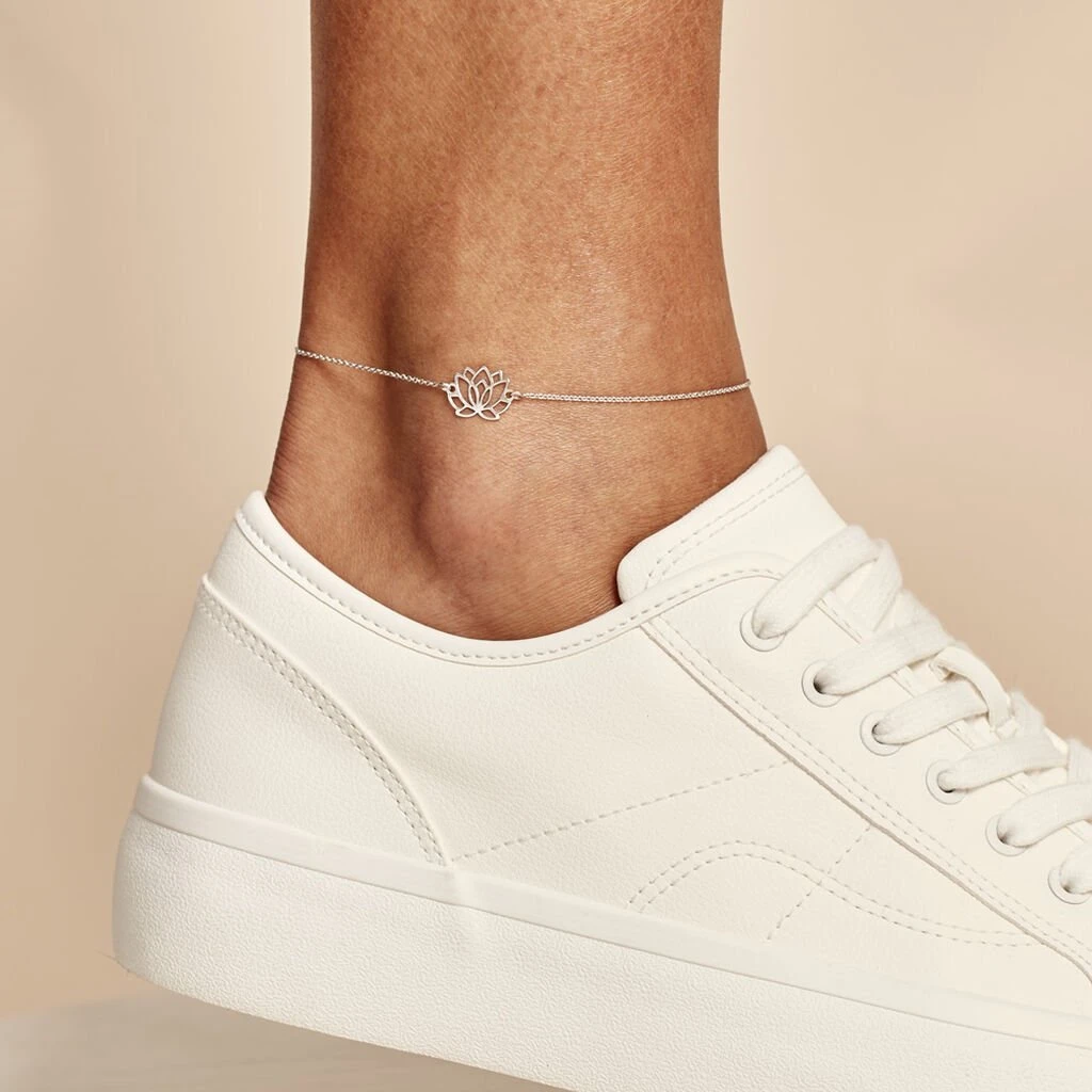 Chaine De Cheville Argent Blanc 925/1000 Lotus Maille Forcat 26cm