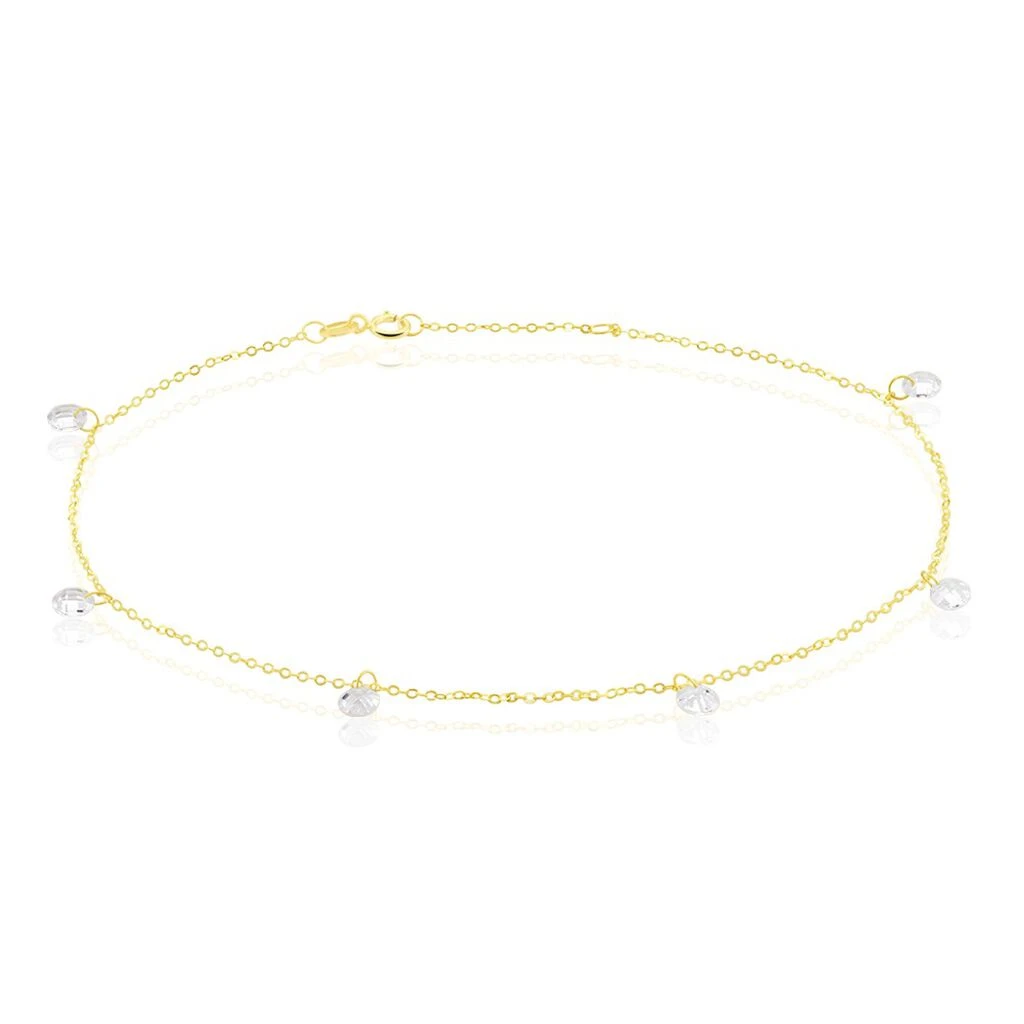 Chaine De Cheville Or Jaune 375/1000 6 Oxydes De Zirconium Perces 22+2 Cm