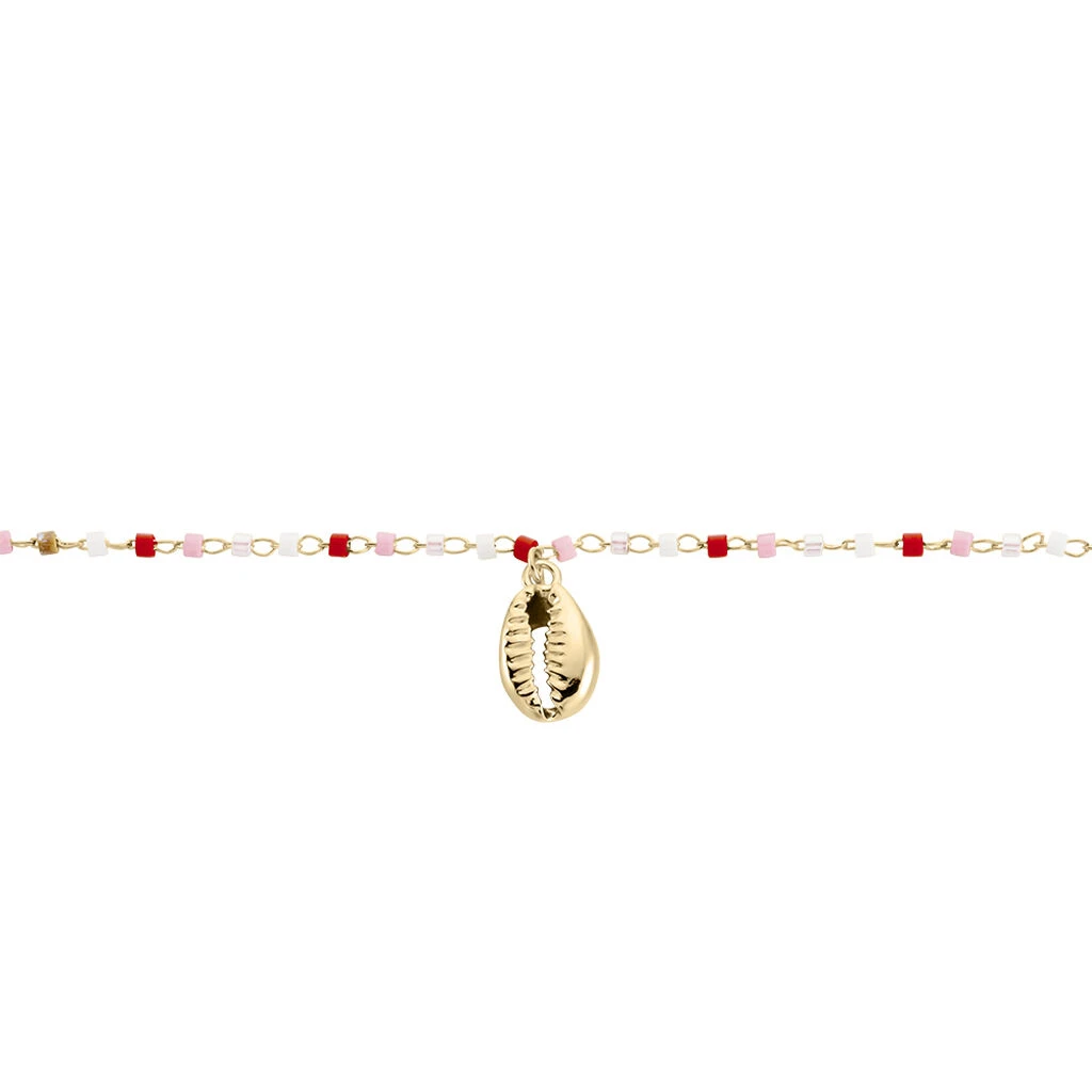 Chaine De Cheville Plaqué Or Jaune Pampille Coquillage Perles De Miyuki Roses Et Blanches 25cm