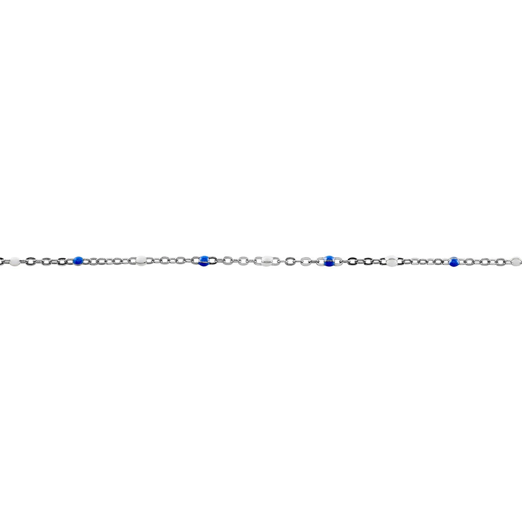 Chaîne De Cheville Argent Blanc 925/1000 Petites Boules Email Bleu Maille Forçat 25cm