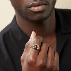 Chevalière Acier Vieilli Keegan œil De Tigre