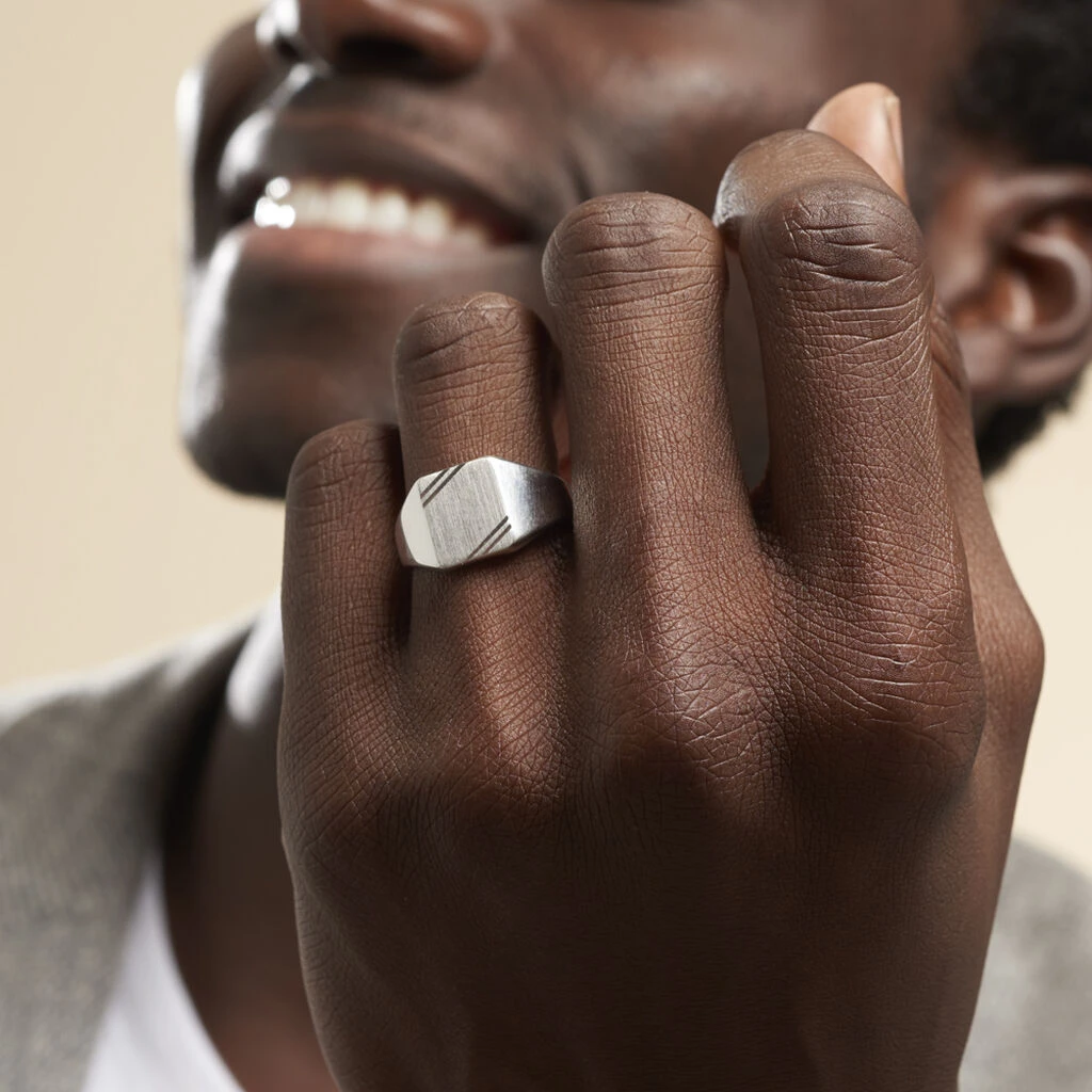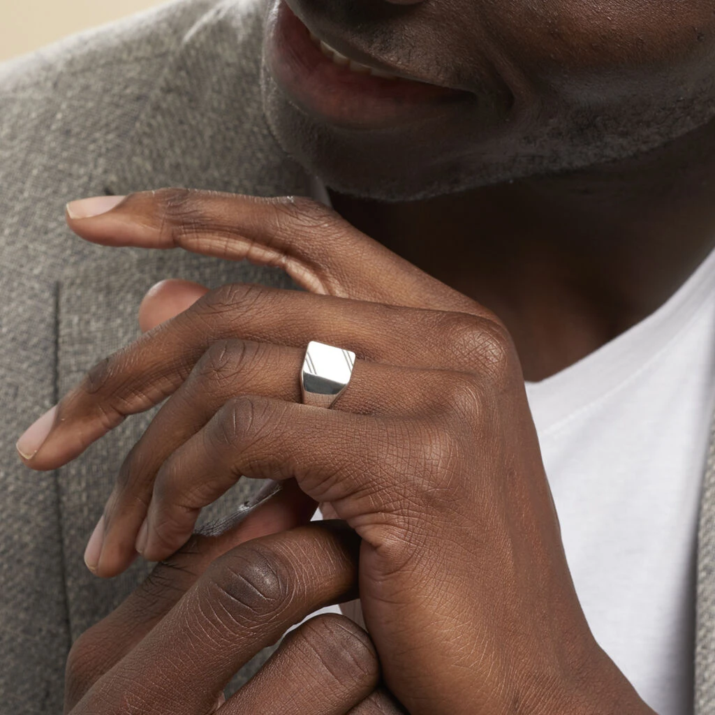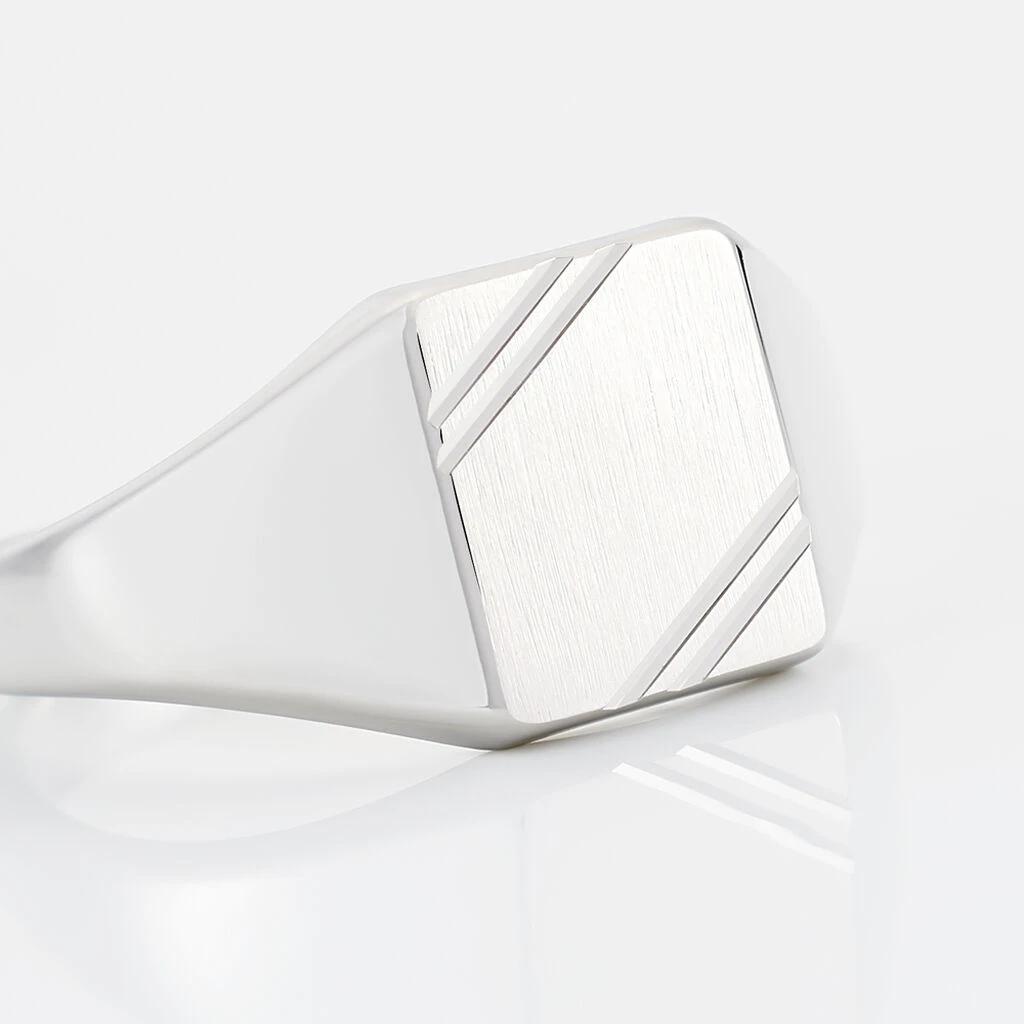 Chevaliere Argent Blanc 925/1000 Plateau Carre Cisele Pm