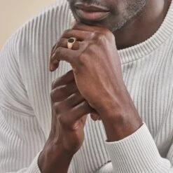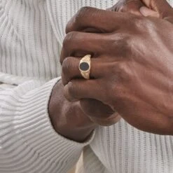 Chevalière Plaqué Or Jaune Forme Ovale Email Noir Corps De Bague Perlé