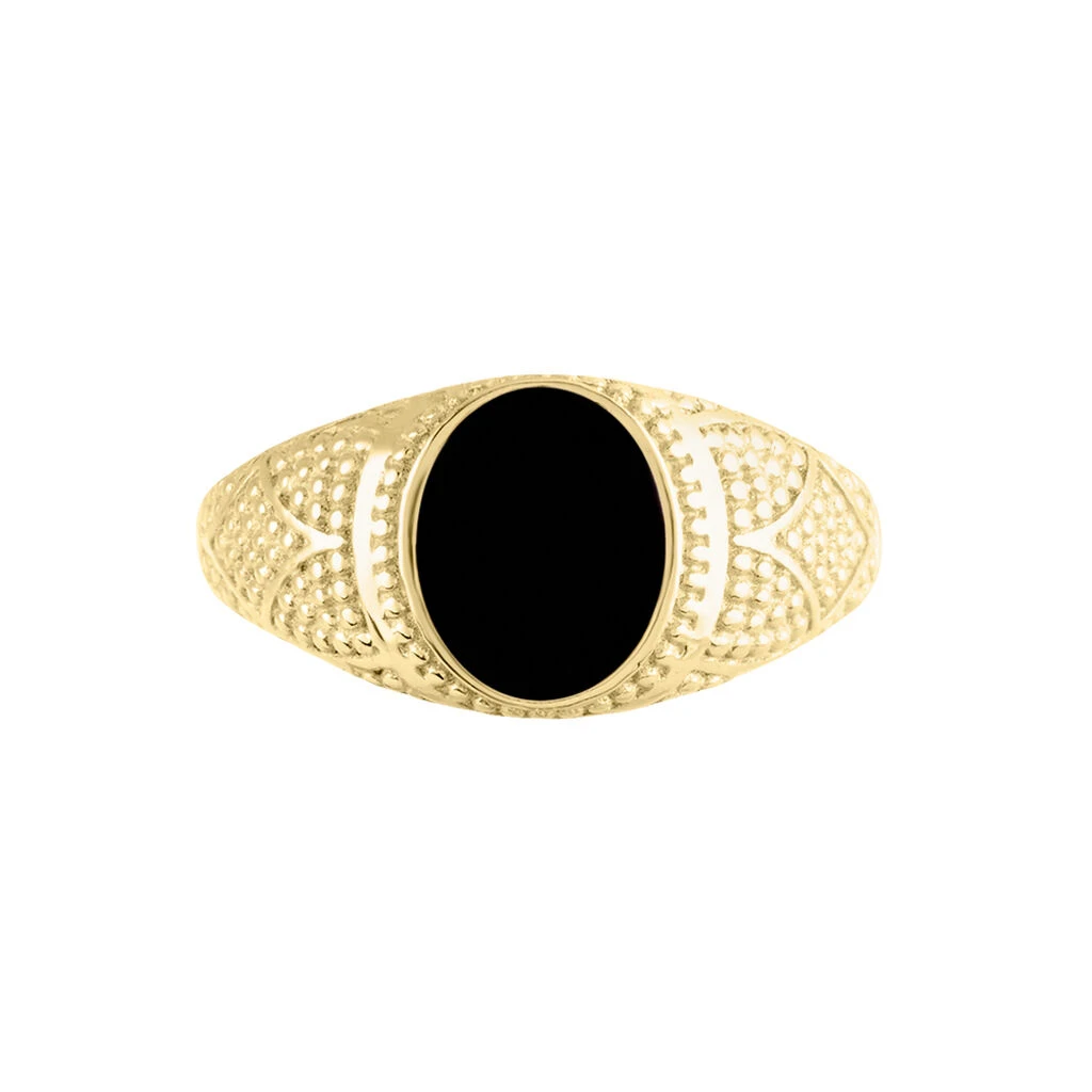 Chevalière Plaqué Or Jaune Azarel Email Noir
