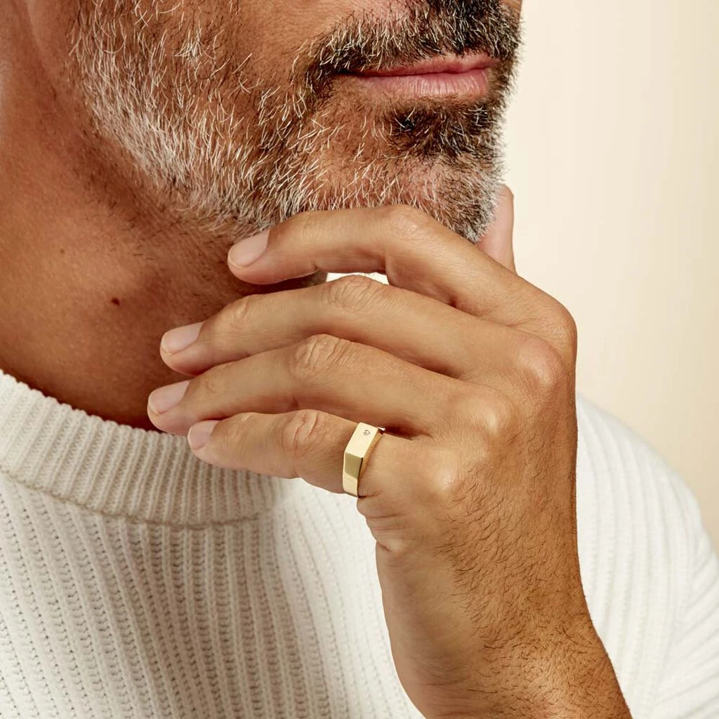 Chevalière Rectangle Or Jaune Oxyde De Zirconium
