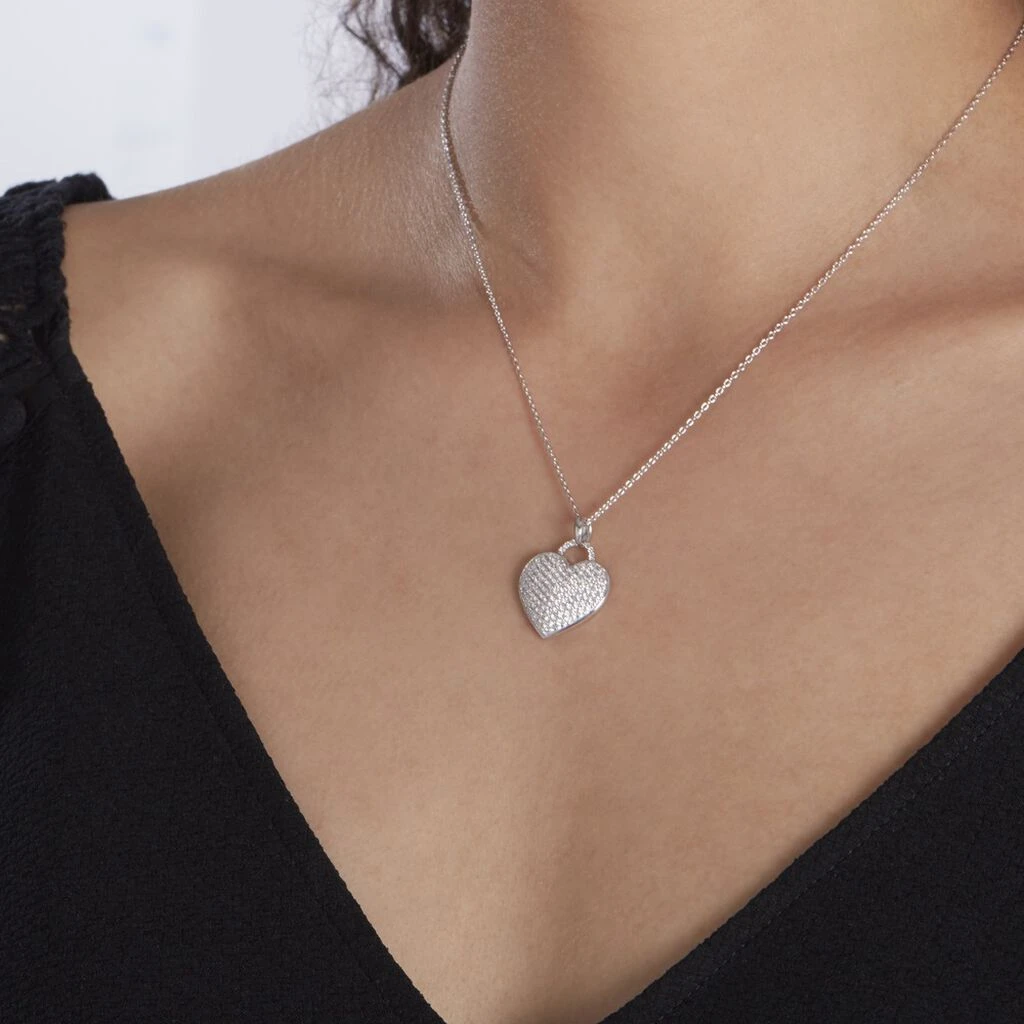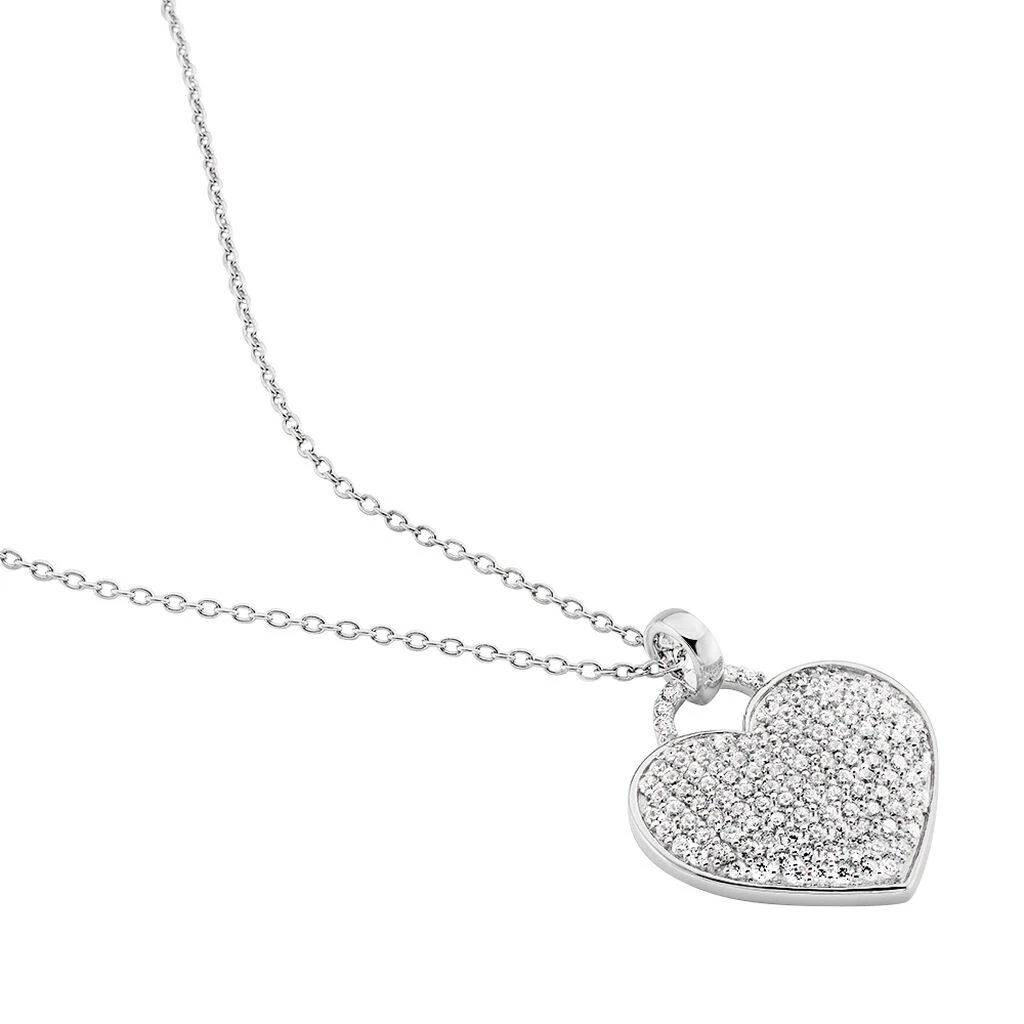 Collier Argent Blanc 925/1000 Coeur Forme Cadenas Pavage Oxydes De Zirconium 45cm