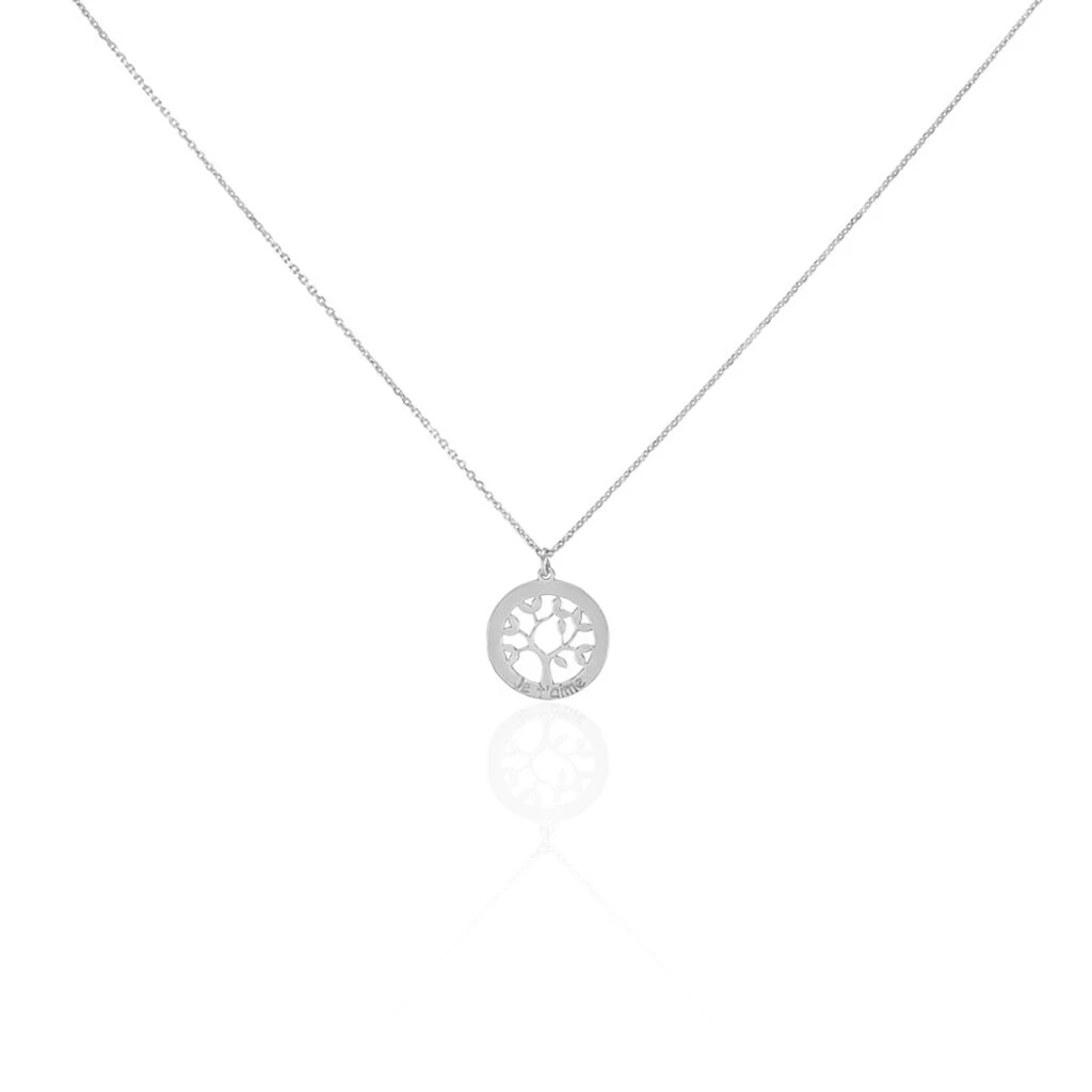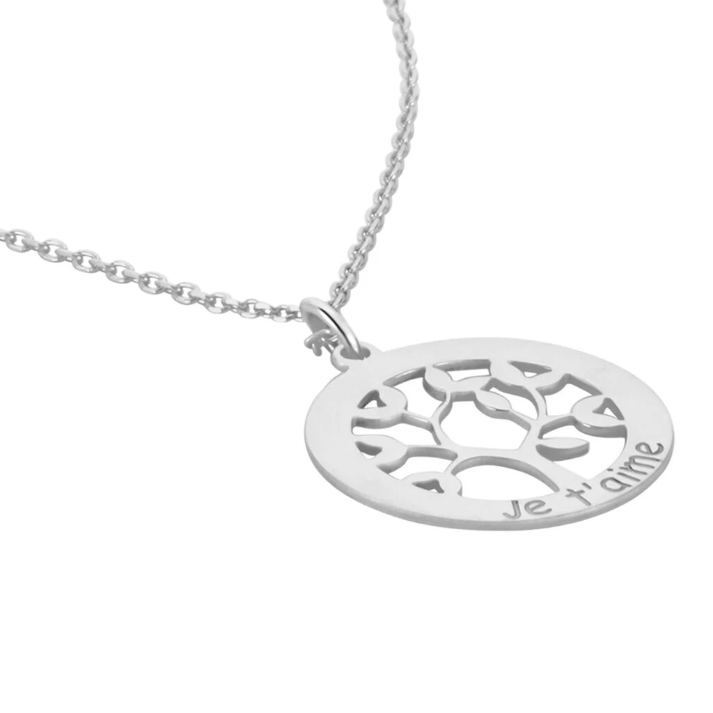 Collier Argent Blanc 925/1000 Arbre De Vie Ajoure Message Je T’aime Maille Forcat 42cm
