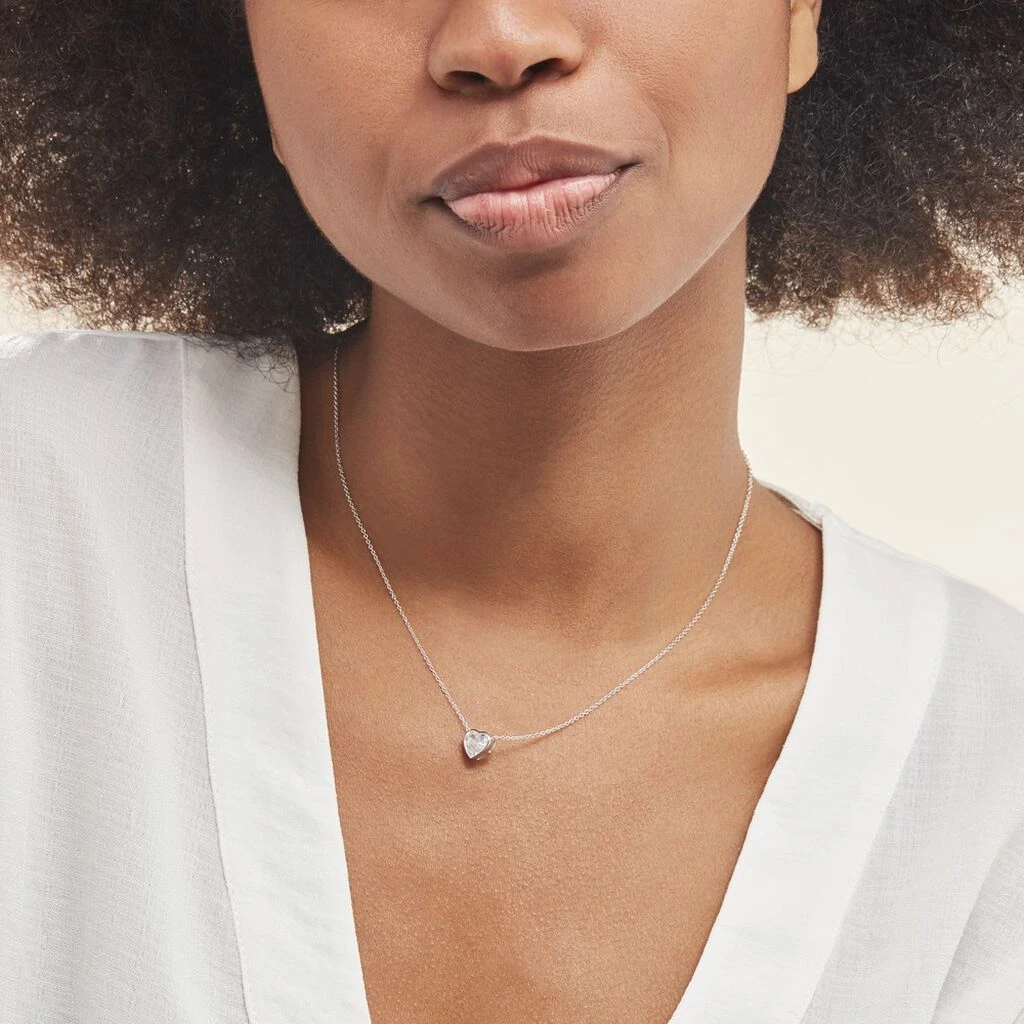 Collier Argent Blanc 925/1000 Cœur Serti Clos Oxyde De Zirconium Maille Forcat 45cm
