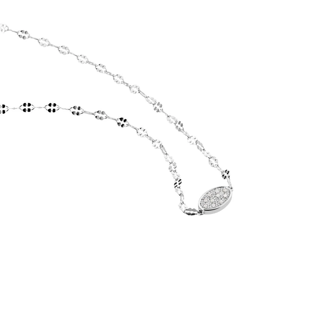 Collier Argent 925/1000 Pastille Ovale Pavage Oxyde Maille Lumina 45cm