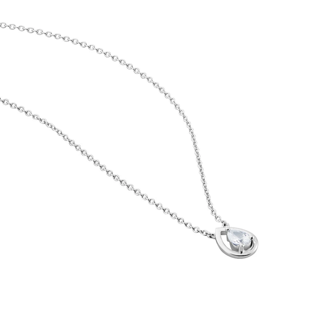Collier Argent Blanc 925/1000 Goutte Sertis Griffes 1 Oxyde De Zirconium Maille Forcat 45cm
