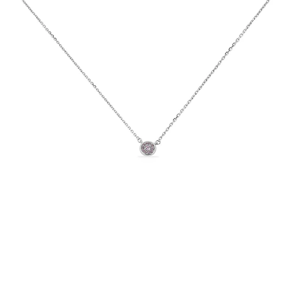 Collier Argent Blanc 925/1000 Puce Pavage Oxydes De Zirconium Roses 45cm