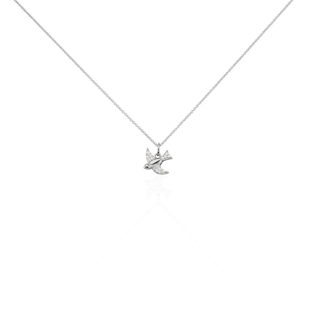 Collier Argent Blanc 925/1000 Motif Hirondelle Avec Oxydes De Zirconium 45cm