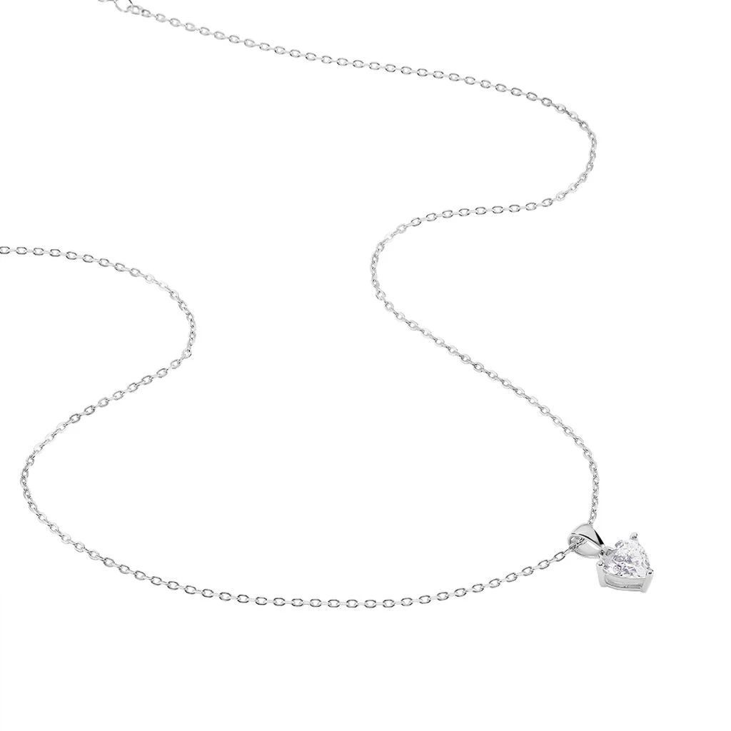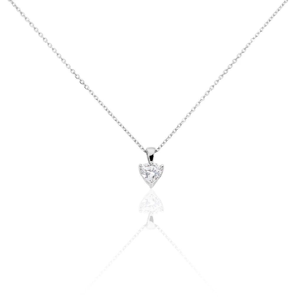 Collier Argent Blanc 925/1000 Oxyde De Zirconium Forme Cœur 7x7mm 45cm