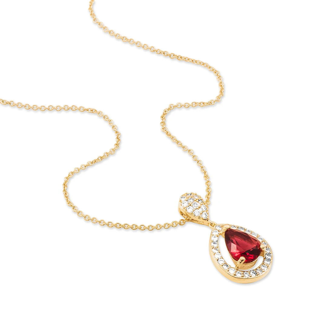 Collier Plaqué Or Jaune Pierre Rouge Entourage Oxydes De Zirconium 44cm