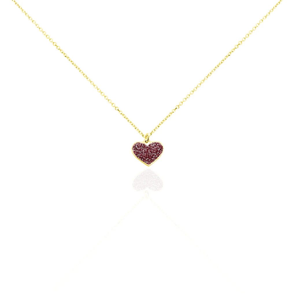 Collier Or Jaune 375/1000 Motif Cœur Glitter Rose Maille Jaseron 38cm
