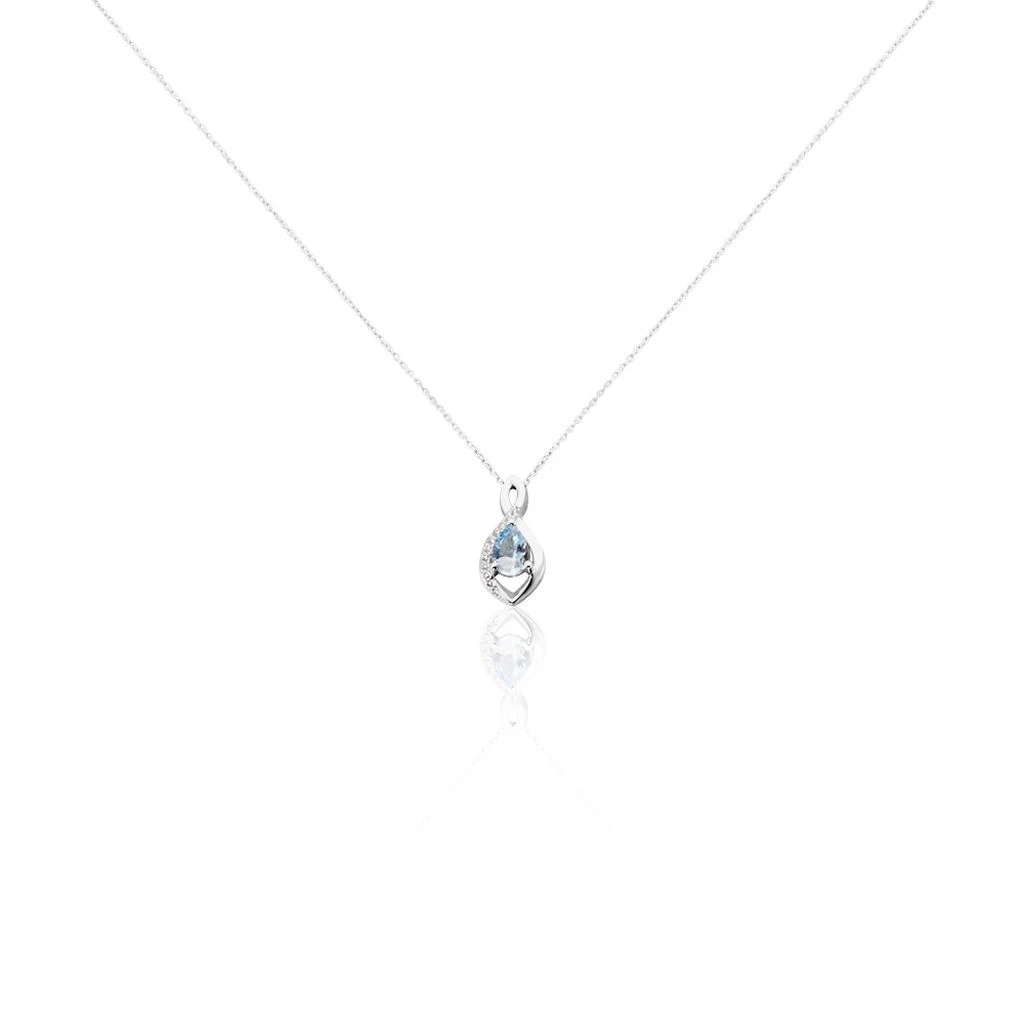 Collier Or Blanc 375/1000 Forme Goutte Topaze Et Oxydes De Zirconium Maille Forçat 38+4cm
