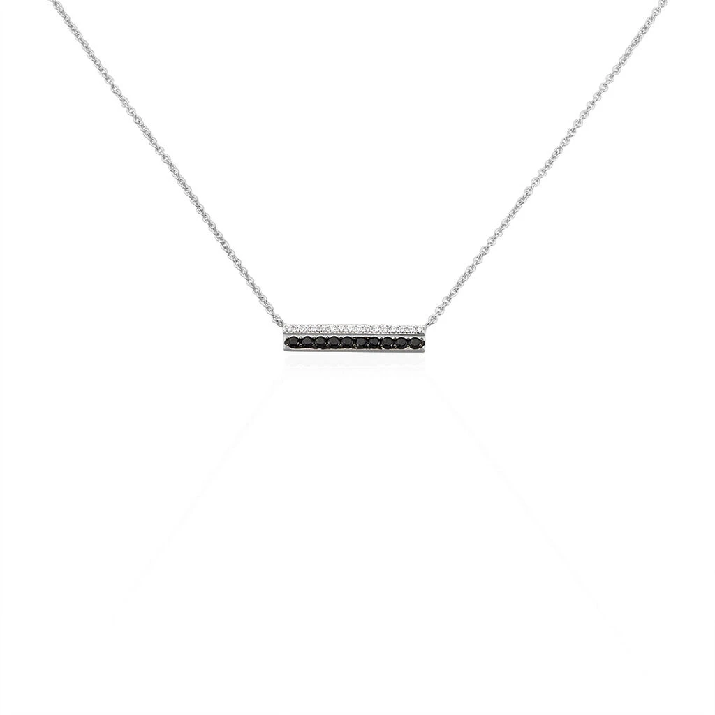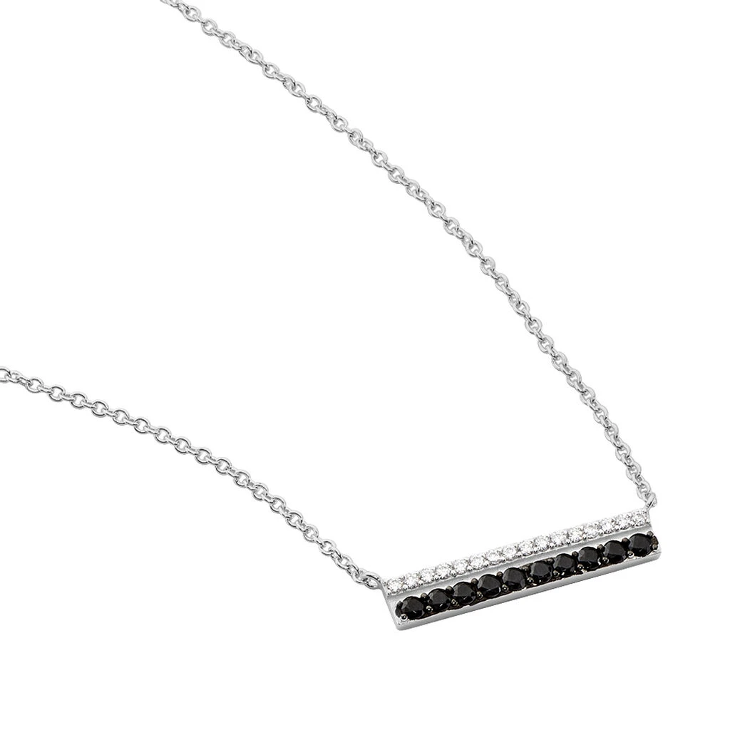 Collier Argent 925/1000 Barrette Oxyde Blancs Et Noirs 45cm