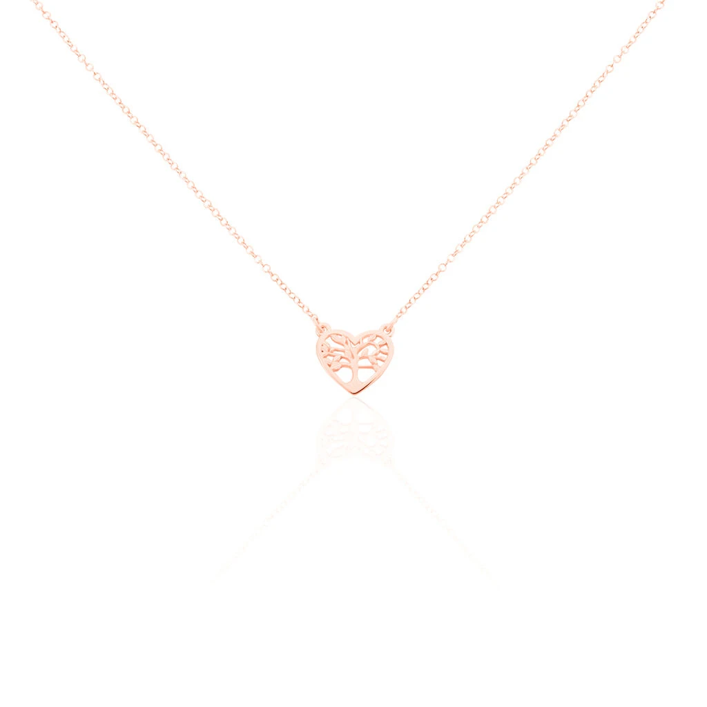 Collier Argent Rose 925/1000 Arbre De Vie Coeur Maille Forcat 40cm