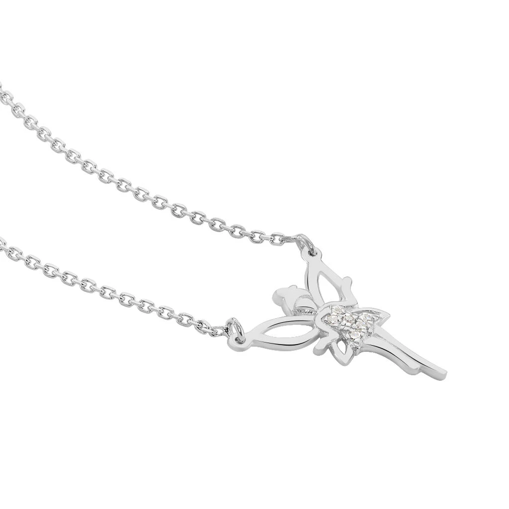 Collier Or Blanc 375/1000 Fée Diamants 42cm