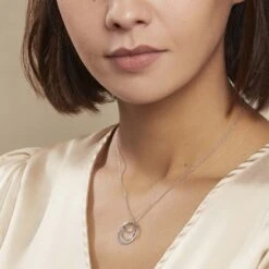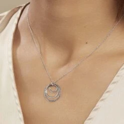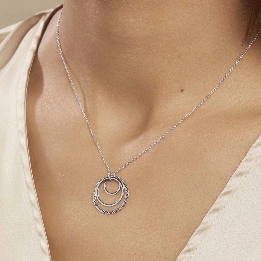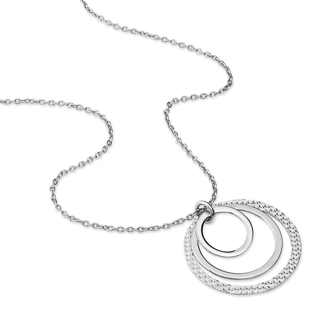 Collier Argent Blanc 925/1000 Cercles Multiples Ajoures Maille Forcat Finition Lisse Et Diamantee 45cm