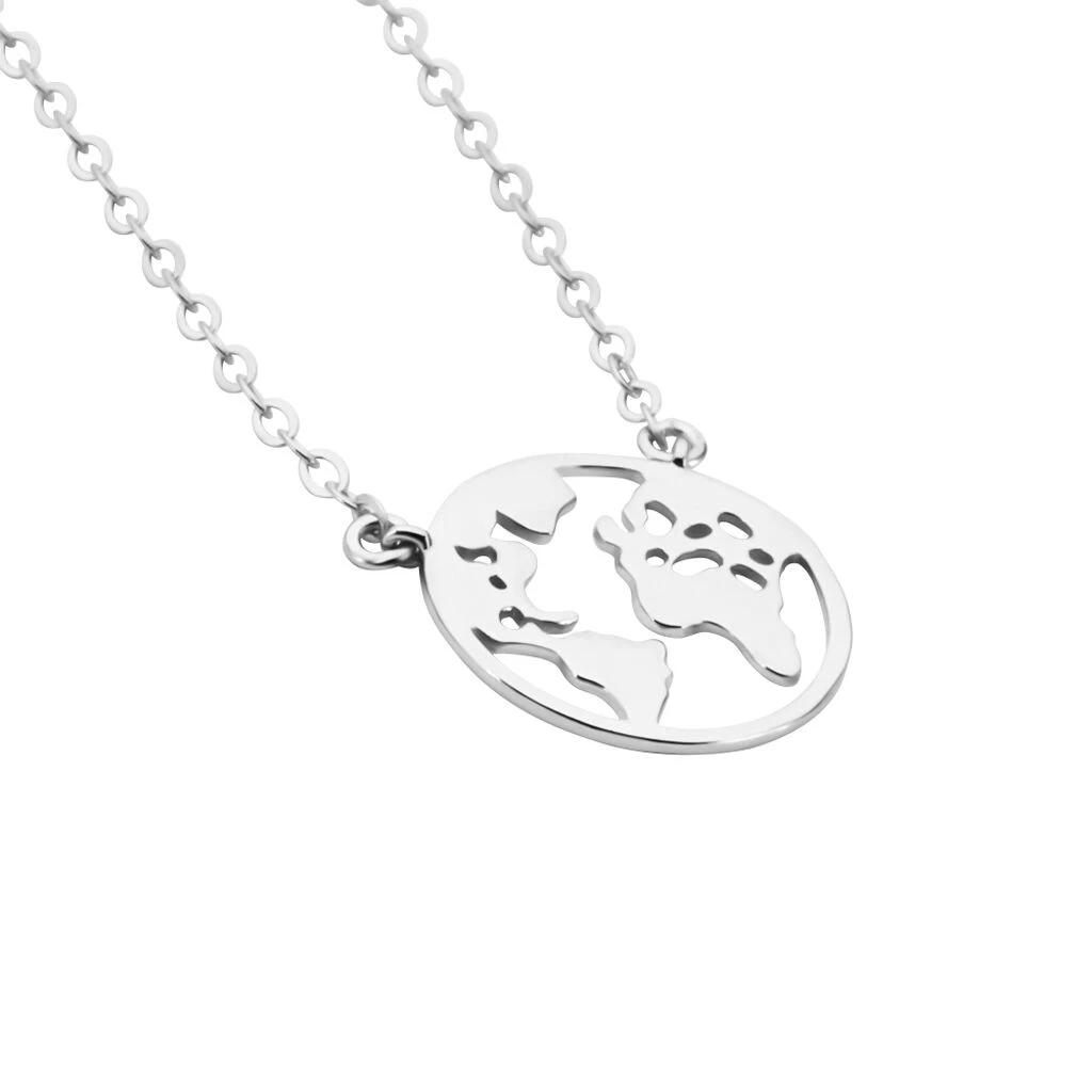 Collier Argent Blanc 925/1000 Carte Du Monde Maille Forçat 38cm