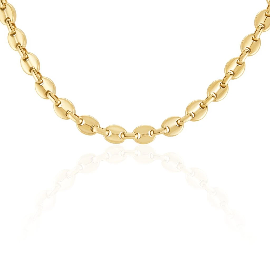 Collier Maille Acier Dore Maille Grain De Cafe Largeur 8mm 52+3cm