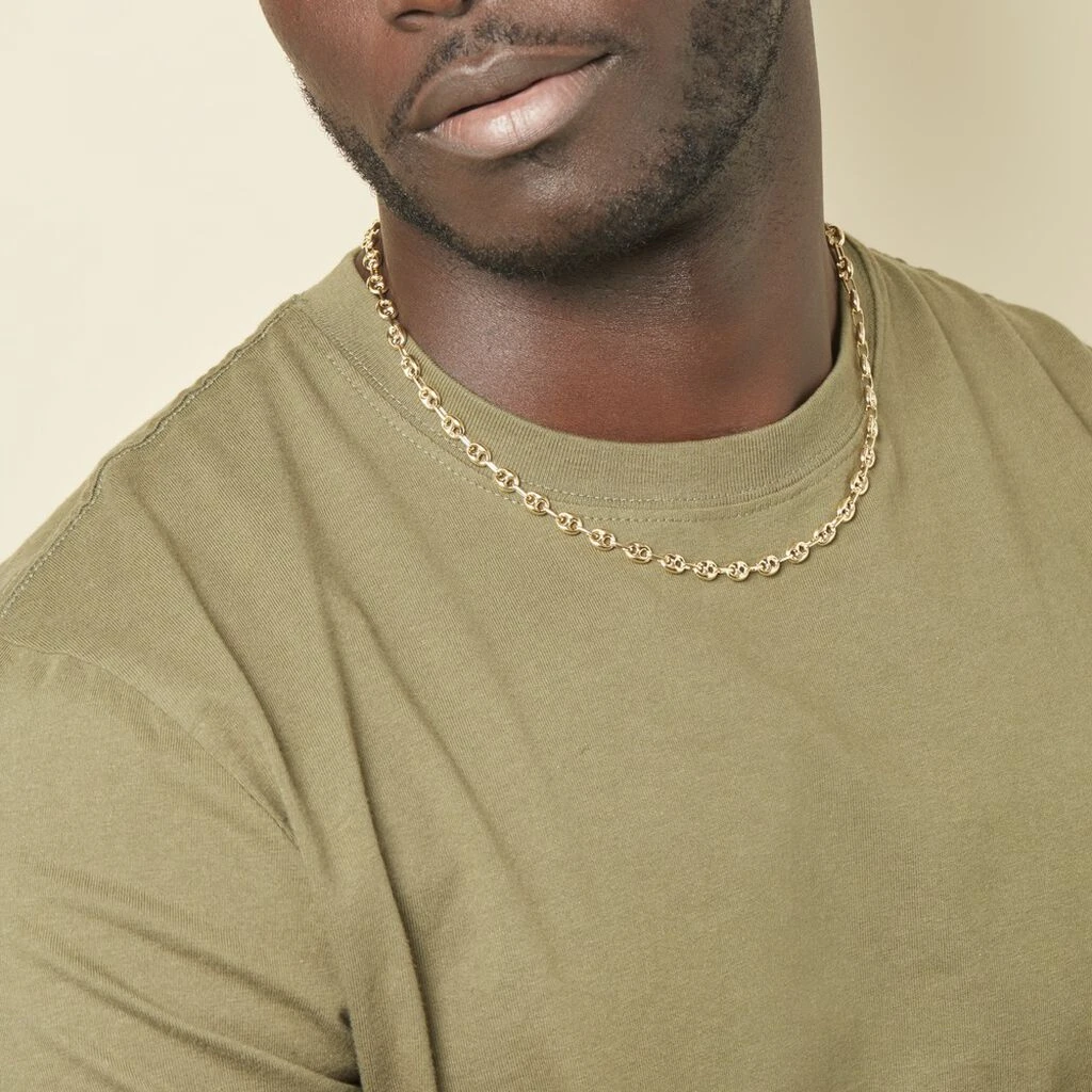 Collier Or Jaune 375/1000 Maille Grain De Café Largeur 6mm 50cm