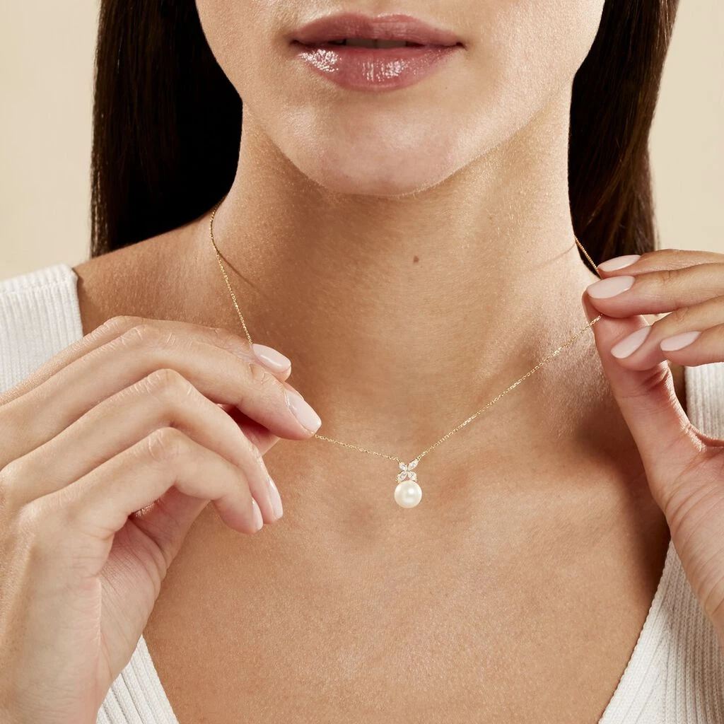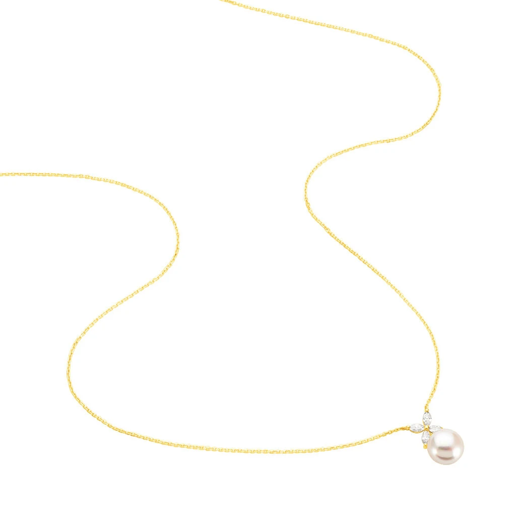Collier Or Jaune 375/1000 Fleur Oxydes De Zirconium Perle De Culture 8mm 43cm