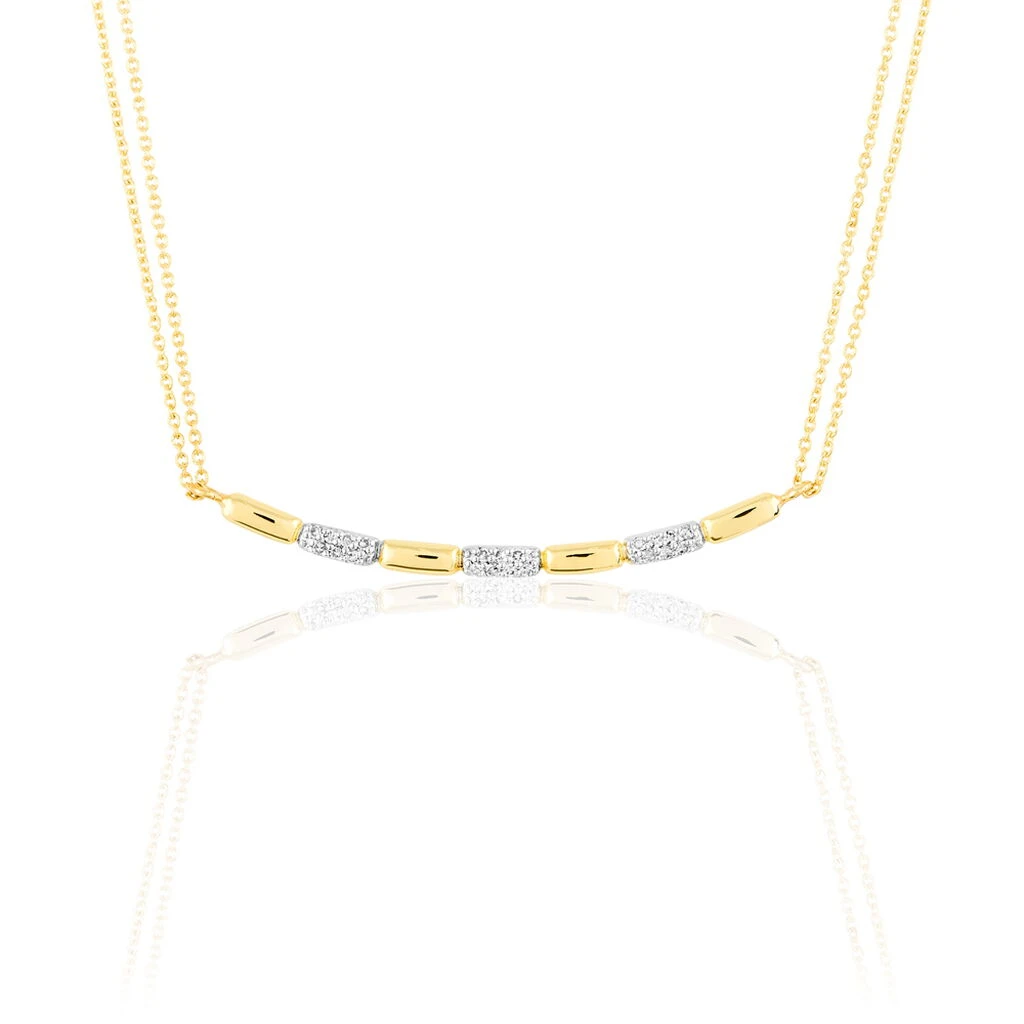 Collier Or Jaune 375/1000 Double Chaine Pavage Diamants Gm 45cm