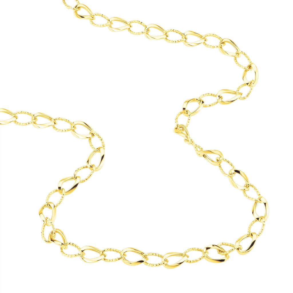 Collier Or Jaune 375/1000 Maille Alternée Lisse Et Godronne Largeur 7.7mm 45cm