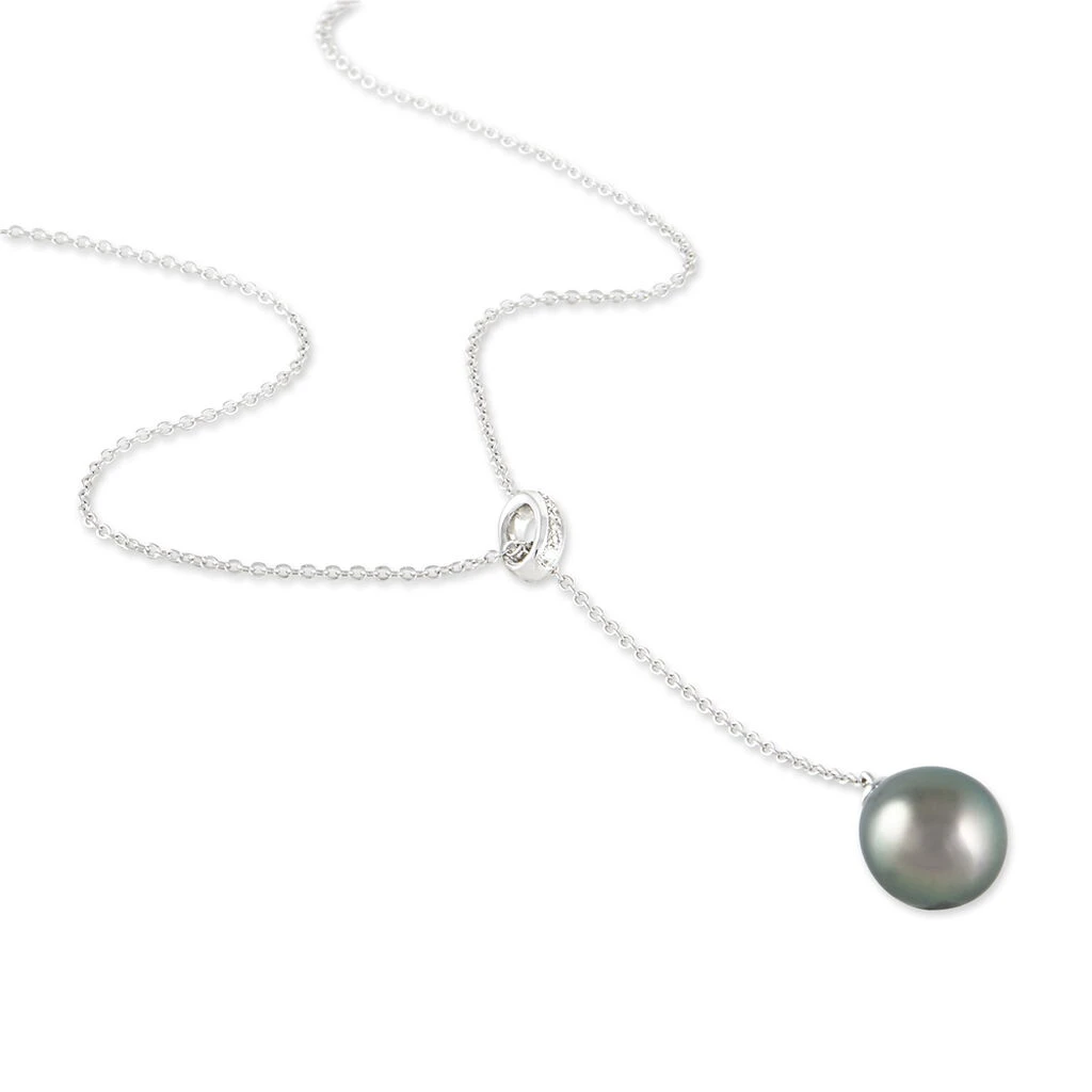 Collier Perrine Or Blanc Perle De Culture De Tahiti Et Diamant