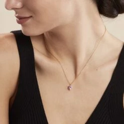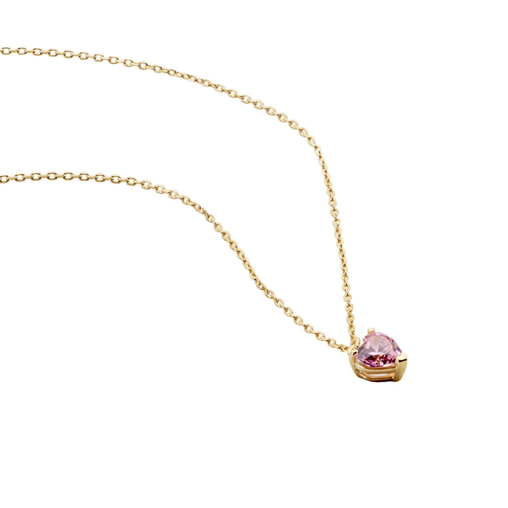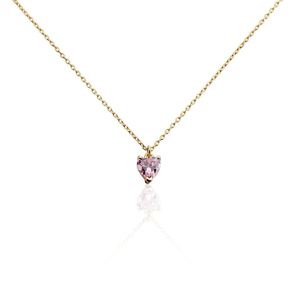 Collier Plaque Or Jaune Cœur Serti Griffes Oxyde De Zirconium Rose Maille Forcat 42+3cm