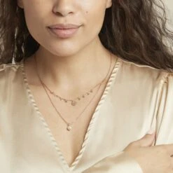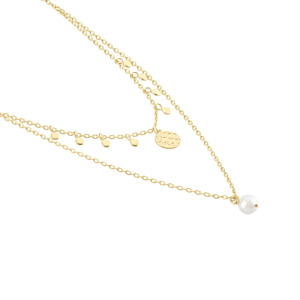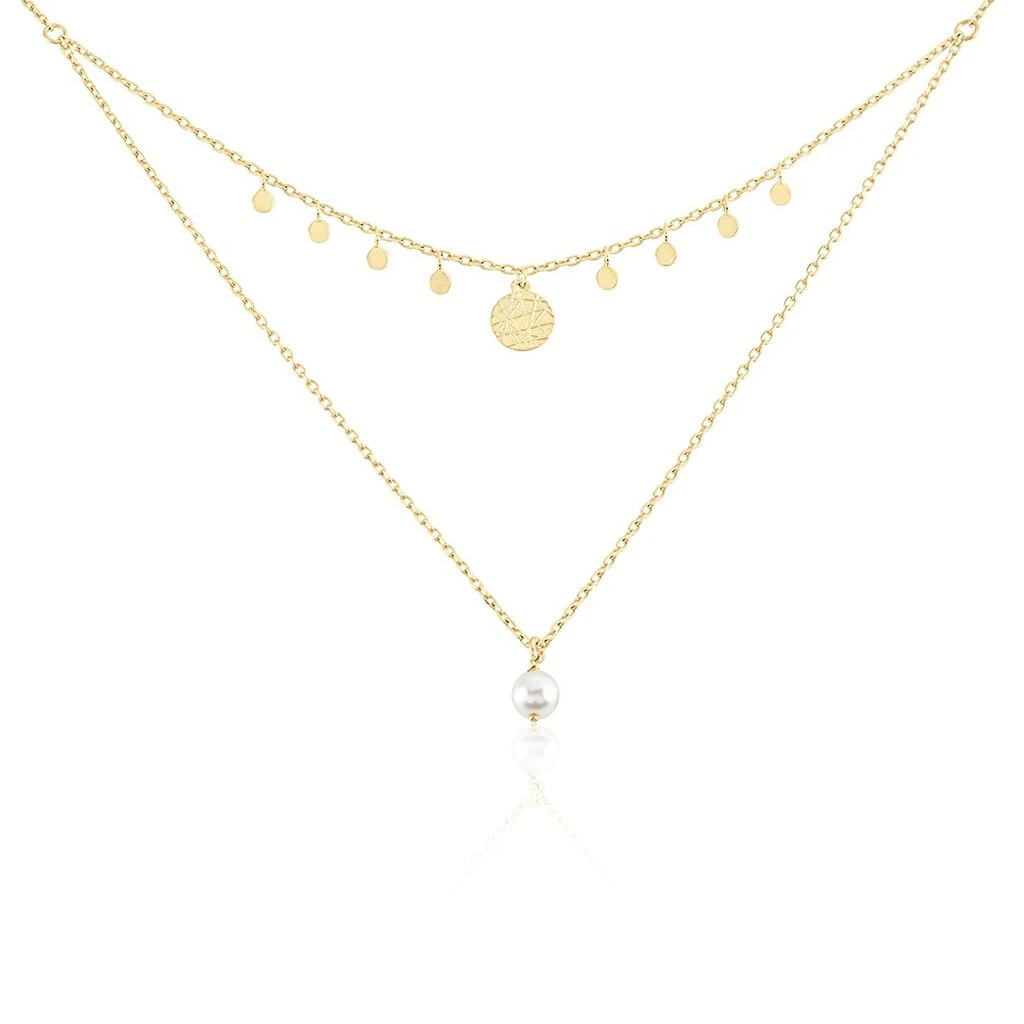 Collier PlaquĂ© Or Jaune Double ChaĂ®nes Pastilles Et Perle D’imitation Maille Forçat 45cm