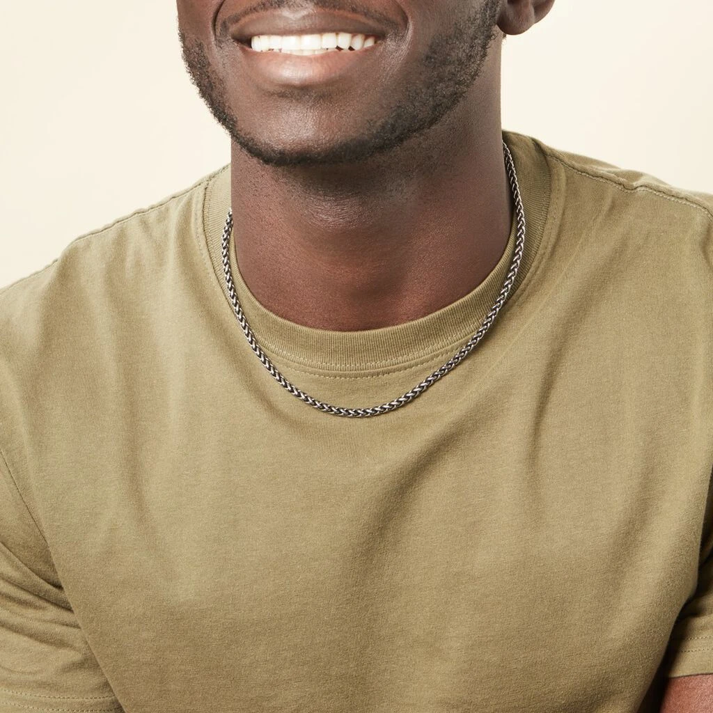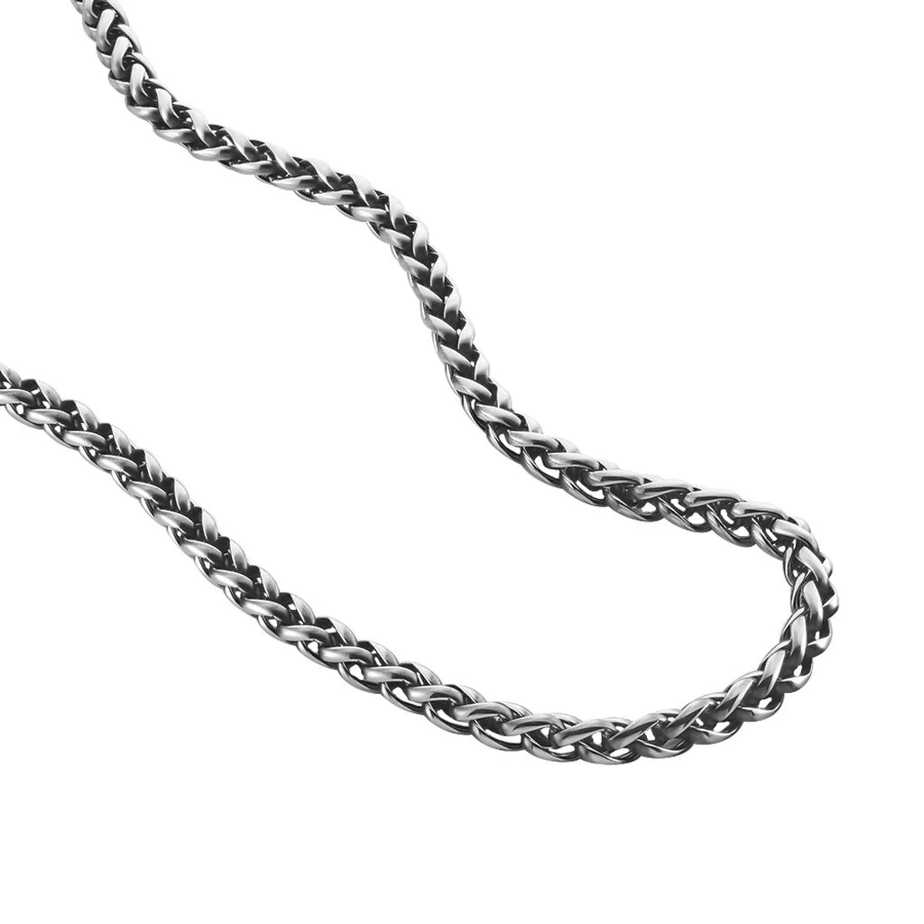 Collier Acier Vieilli Maille Palmier 50cm