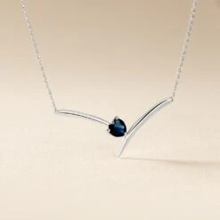 Collier Or Blanc 375/1000 Maille Forçat Saphir Cœur 0.46mm 43cm