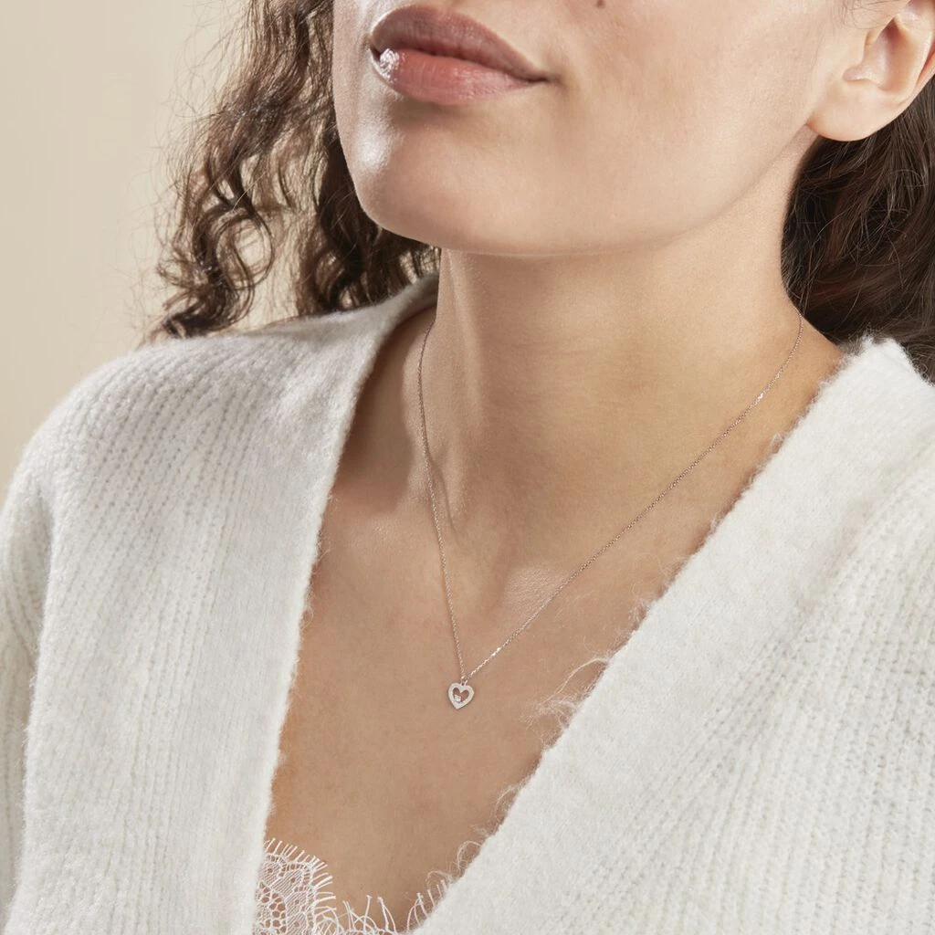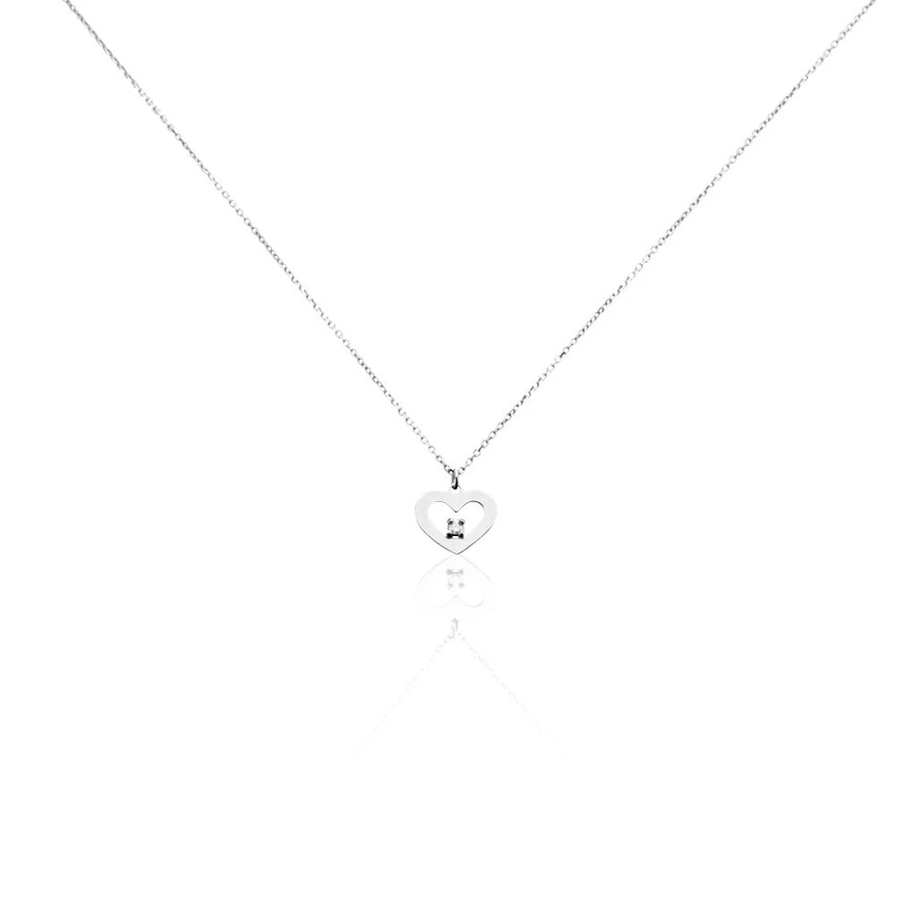 Collier Or Blanc 375/1000 Sweet Heart Cœur Et Diamant Blanc 42cm