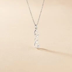 Collier Argent Blanc 925/1000 Pendentif 3 Coeurs Avec Oxydes De Zirconium Chaine Maille Forcat 42cm