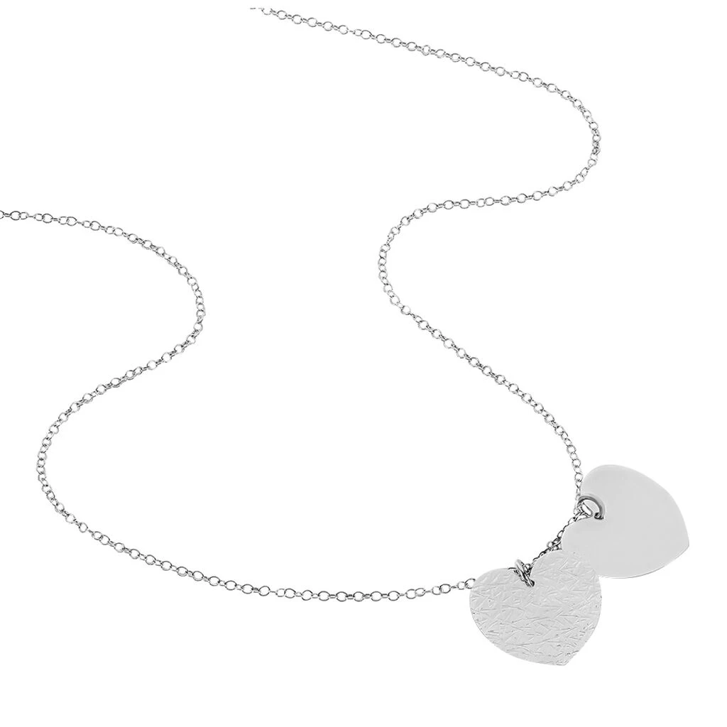 Collier Argent Blanc 925/1000 Doubles Cœurs Finition Lisse Et Diamante Maille Forcat 45cm