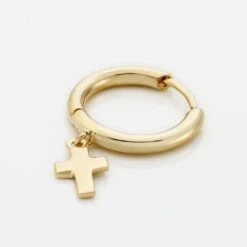 Créole Unitaire Plaqué Or Doré Pampille Croix Diamètre 10mm