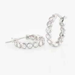Créoles Argent Blanc 925/1000 Effet Perlé Oxydes De Zirconium Serti Clos Diamètre 18mm