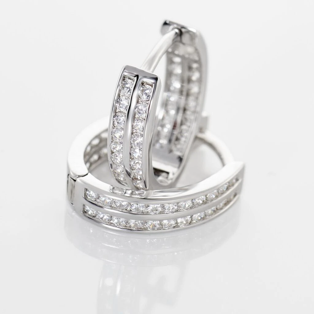 Boucles D’oreilles Creoles Argent Blanc 925/1000 Ovales Double Rang Pavage Oxydes De Zirconium
