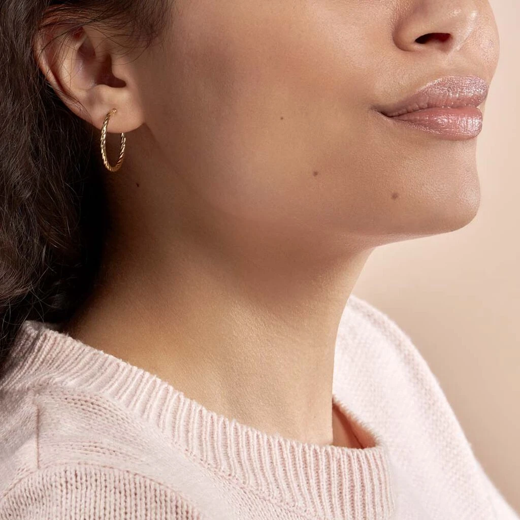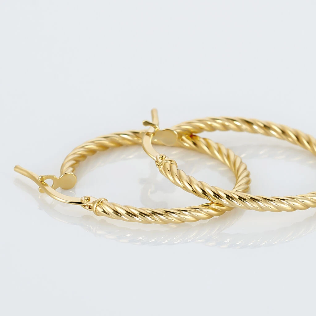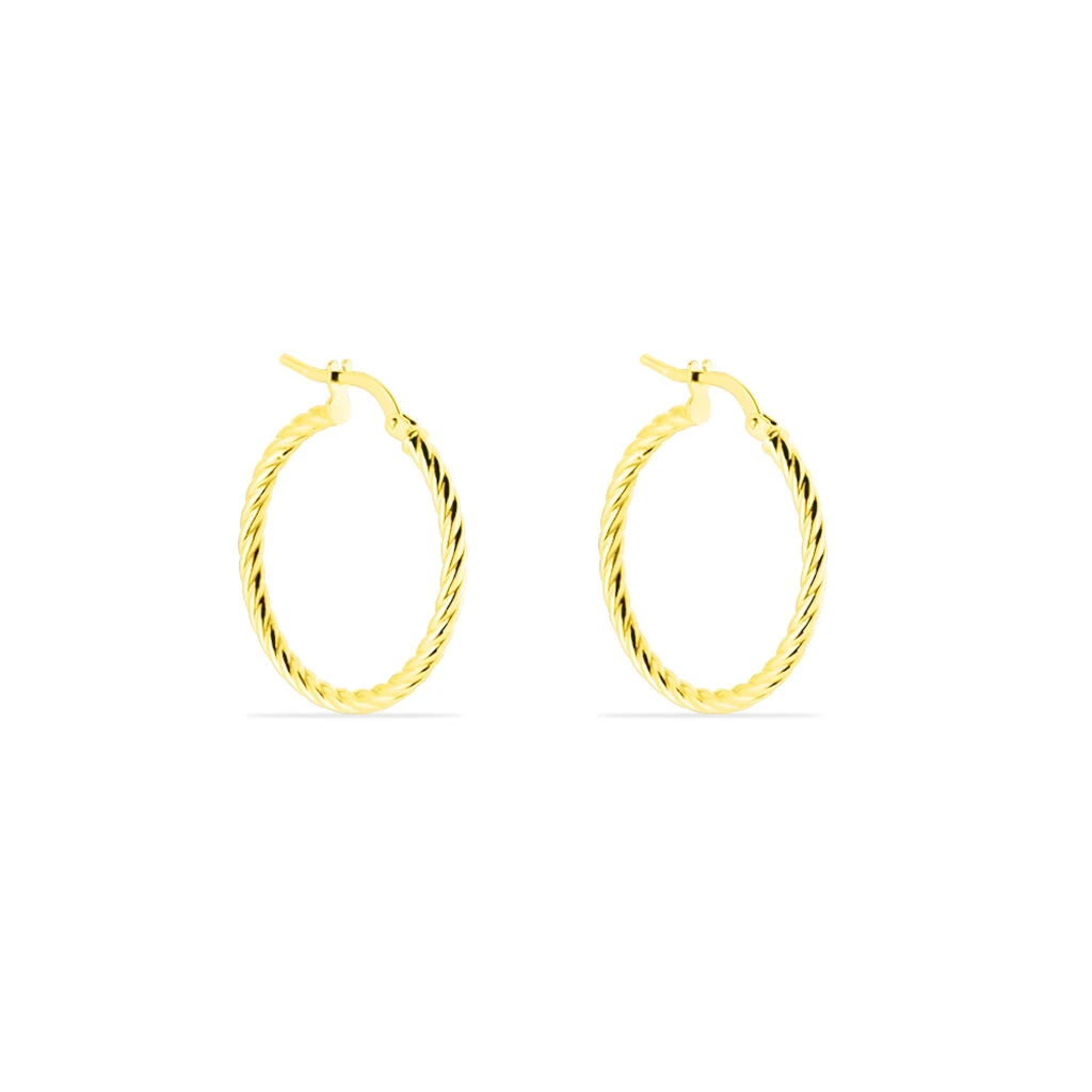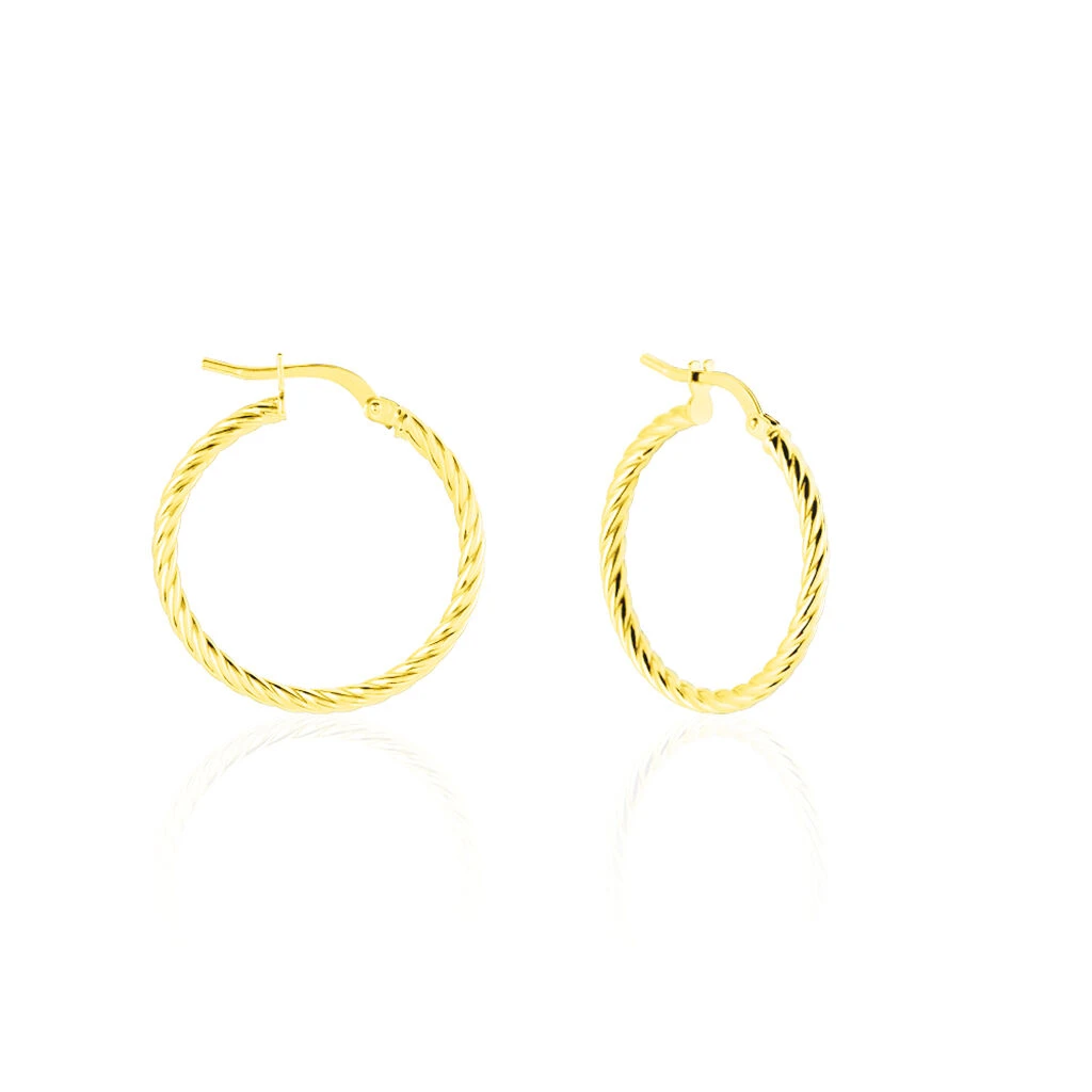 Créoles Or Jaune 375/1000 Fil Rond Torsadé Largeur 2mm Diamètre 20mm