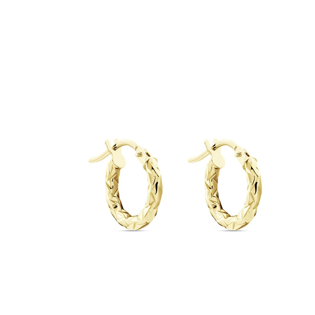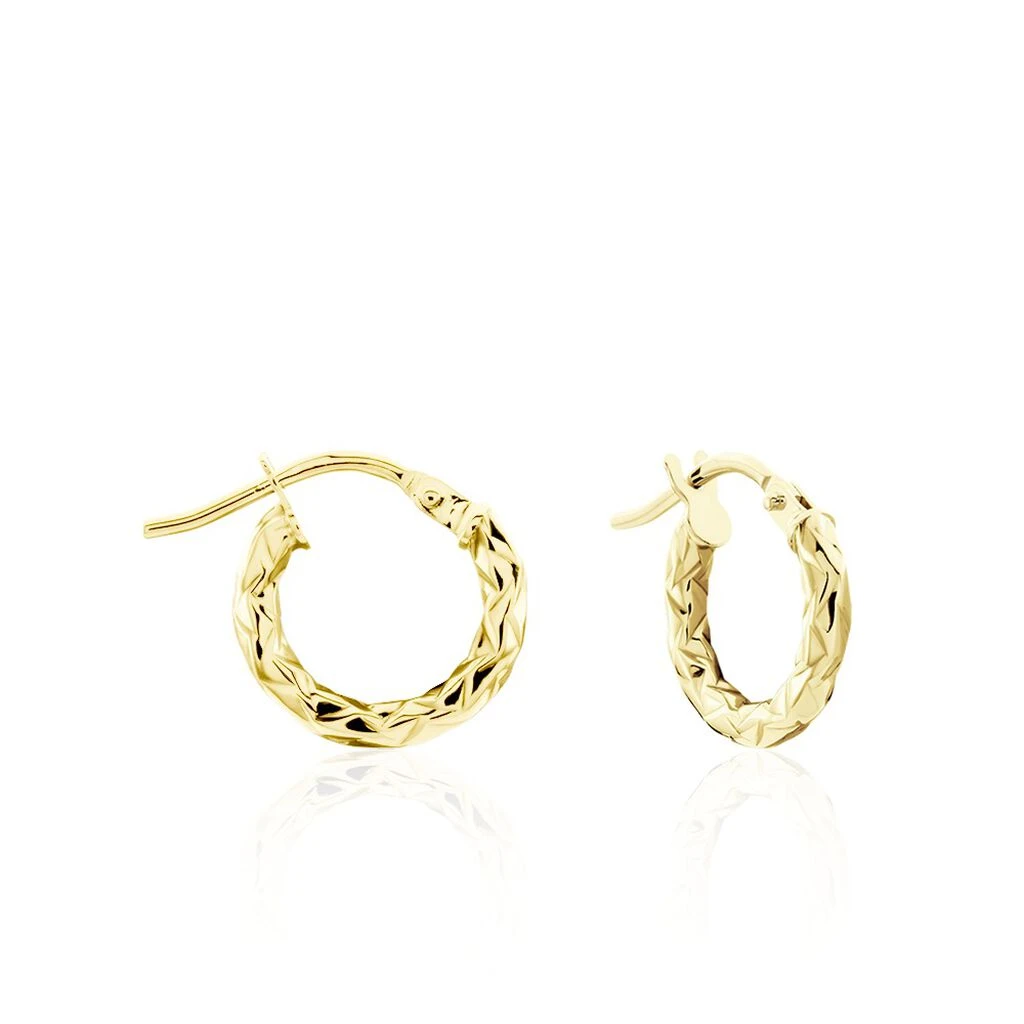 Créoles Or Jaune 375/1000 Fil Rond Diamante Epaisseur 2mm Diamètre 8mm